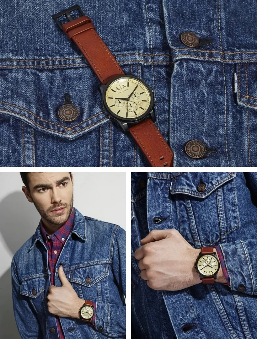 Ключевой ингредиент? Универсальность. Цвет и дизайн, делающие часы такими, какие будут одинаково хорошо приняты как вашими приятелями в соседнем районе, так и вашей будущей свекровью на первой встрече. Вам подойдет модель идеально сочетающая в себе коричневый кожаный ремешок (он гораздо более универсален, чем формальная черная кожа) и золотой циферблат приглушенного цвета (с легкой полировкой) с безелем и функцией хронографа.