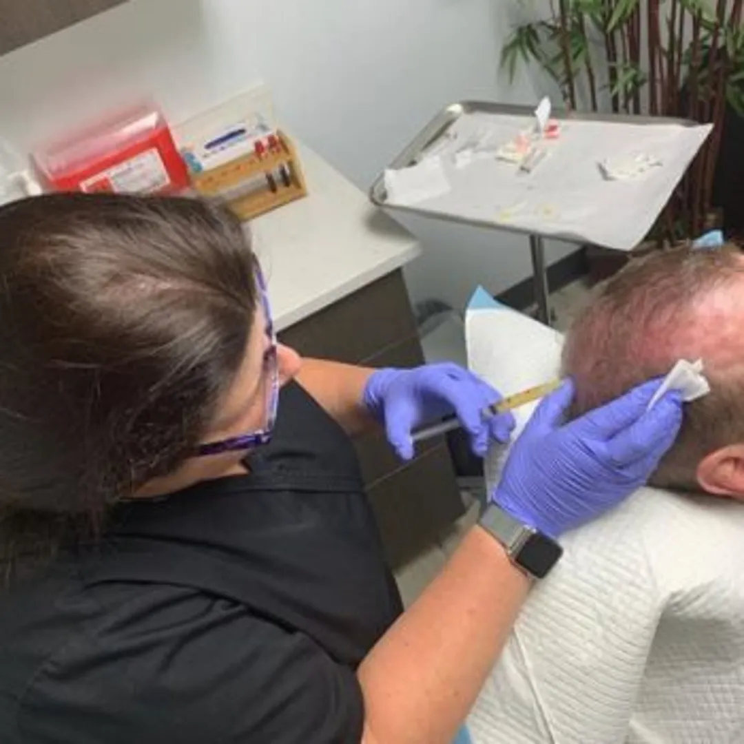 Лечение, при котором вам необходимо посетить клинику, кровь берется из вашей руки и центрифугируется для отделения эритроцитов, плазмы и богатой тромбоцитами плазмы. Затем вводят в зону облысения повысить густоту волос.