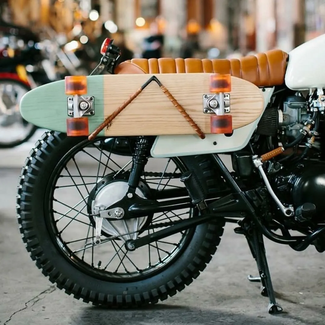 Кроме этого, вы можете воспользоваться данным способом для перевозки лонгборда на мотоцикле или скутере.