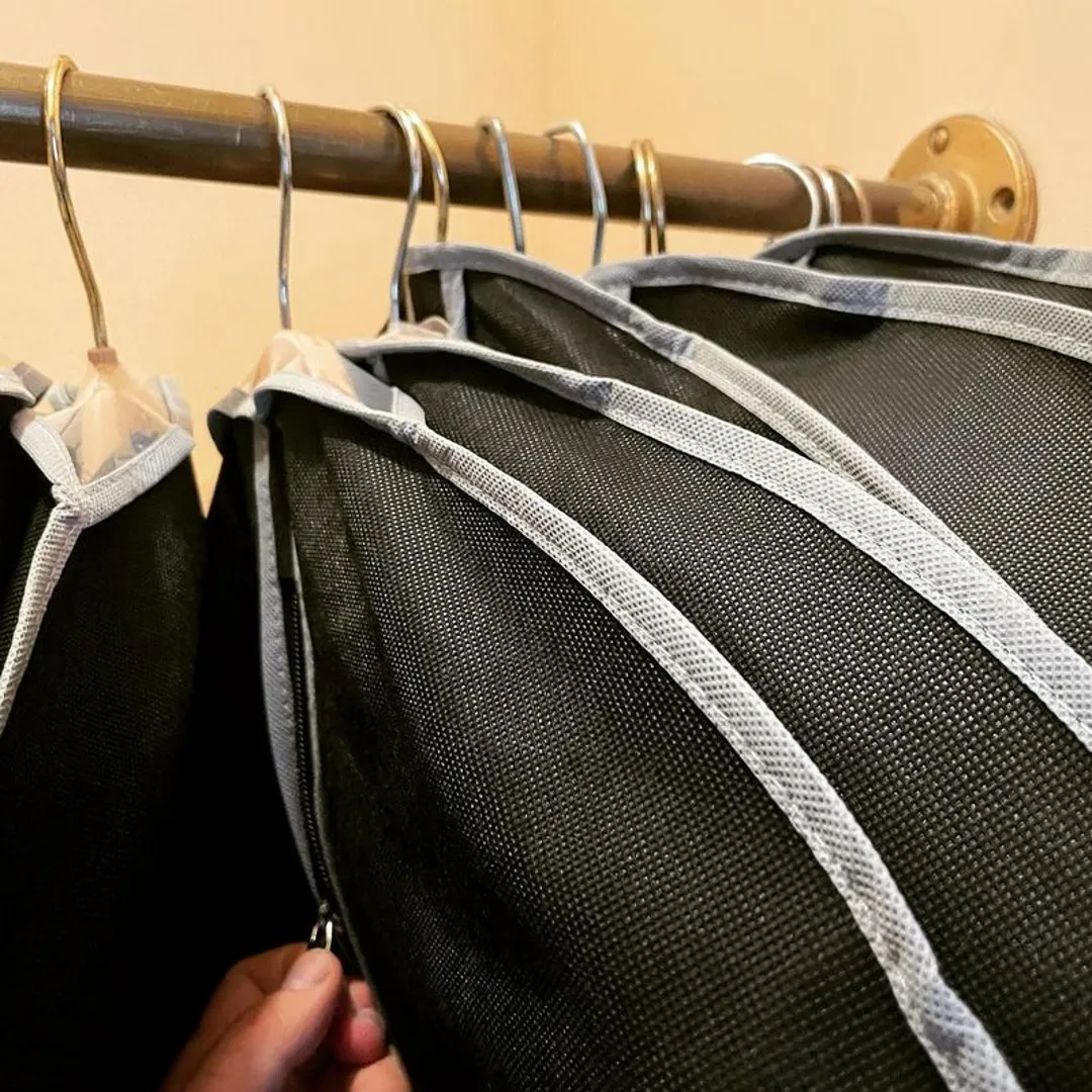 Помимо того, что в шкафу должно быть достаточно места, также полезно всегда хранить костюмы в чехлах для одежды. Чехлы для одежды делают все: от защиты костюма от моли до сохранения волокон чистыми от пыли. Однако убедитесь, что чехлы, приобретаемые вами, являются воздухопроницаемыми. В противном случае будет нарушена циркуляция воздуха, и влага будет скапливаться внутри и повредит костюм.