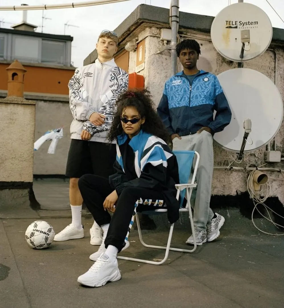 Supreme, Palace, Patta: некоторые из самых культовых брендов уличной и скейтовой одежды были вдохновлены в те годы работами Umbro в футболе. Совпадение стилей нашло прямое выражение в ряде коллабораций, последняя из которых – с Supreme, где были представлены спортивные костюмы больших размеров, вдохновленные эстетикой девяностых.