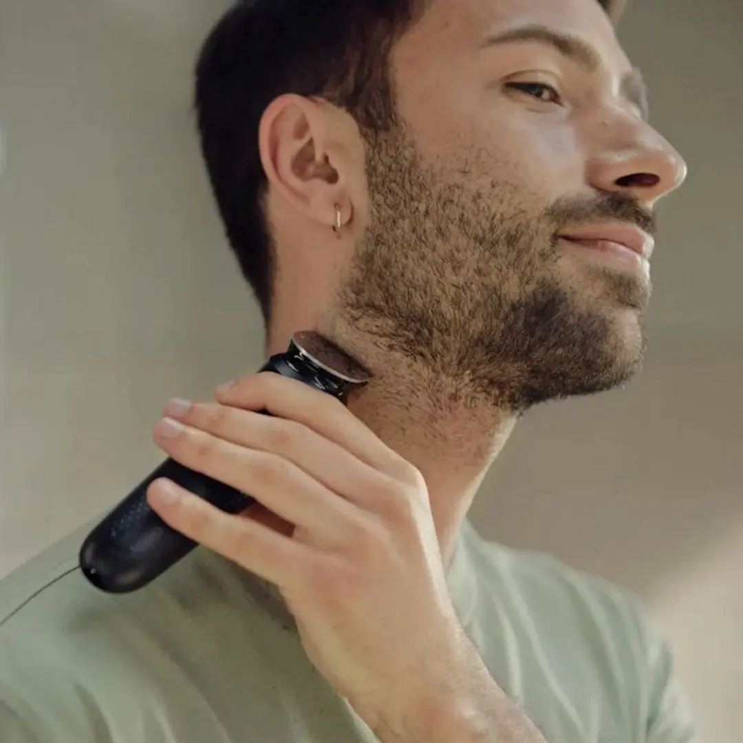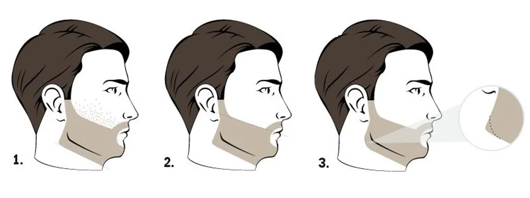 Следующим этапом бритья является подравнивание бороды по бокам, где линия должна повторять линию челюсти.