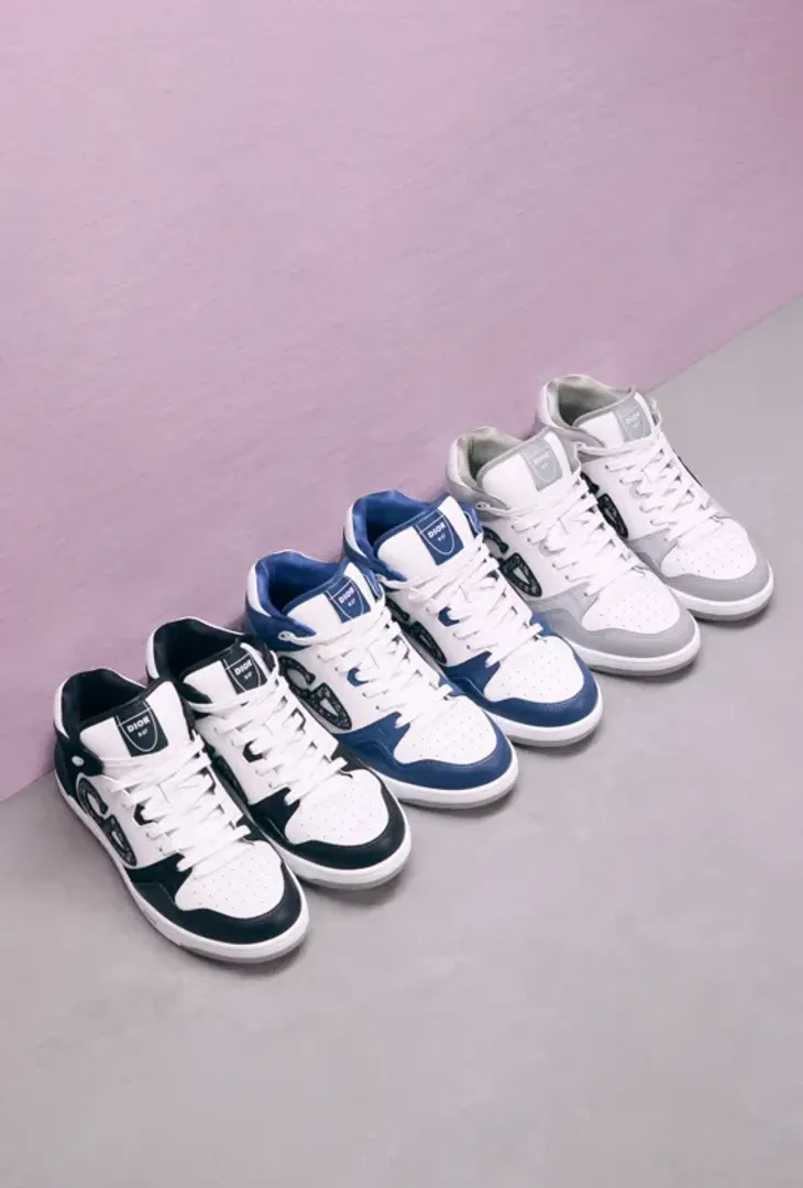 Доступные в различных цветовых вариантах — сером, черном, синем, красном, бежевом и кремовом, Dior Men B57 во многом повторяют силуэты самых классических баскетбольных кроссовок, перерабатывая их в роскошную версию, которая призвана объединить эстетику бренда и видение Кима Джонса.