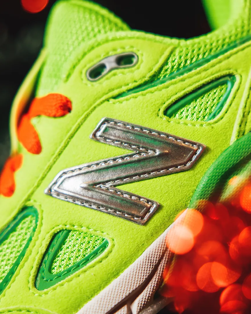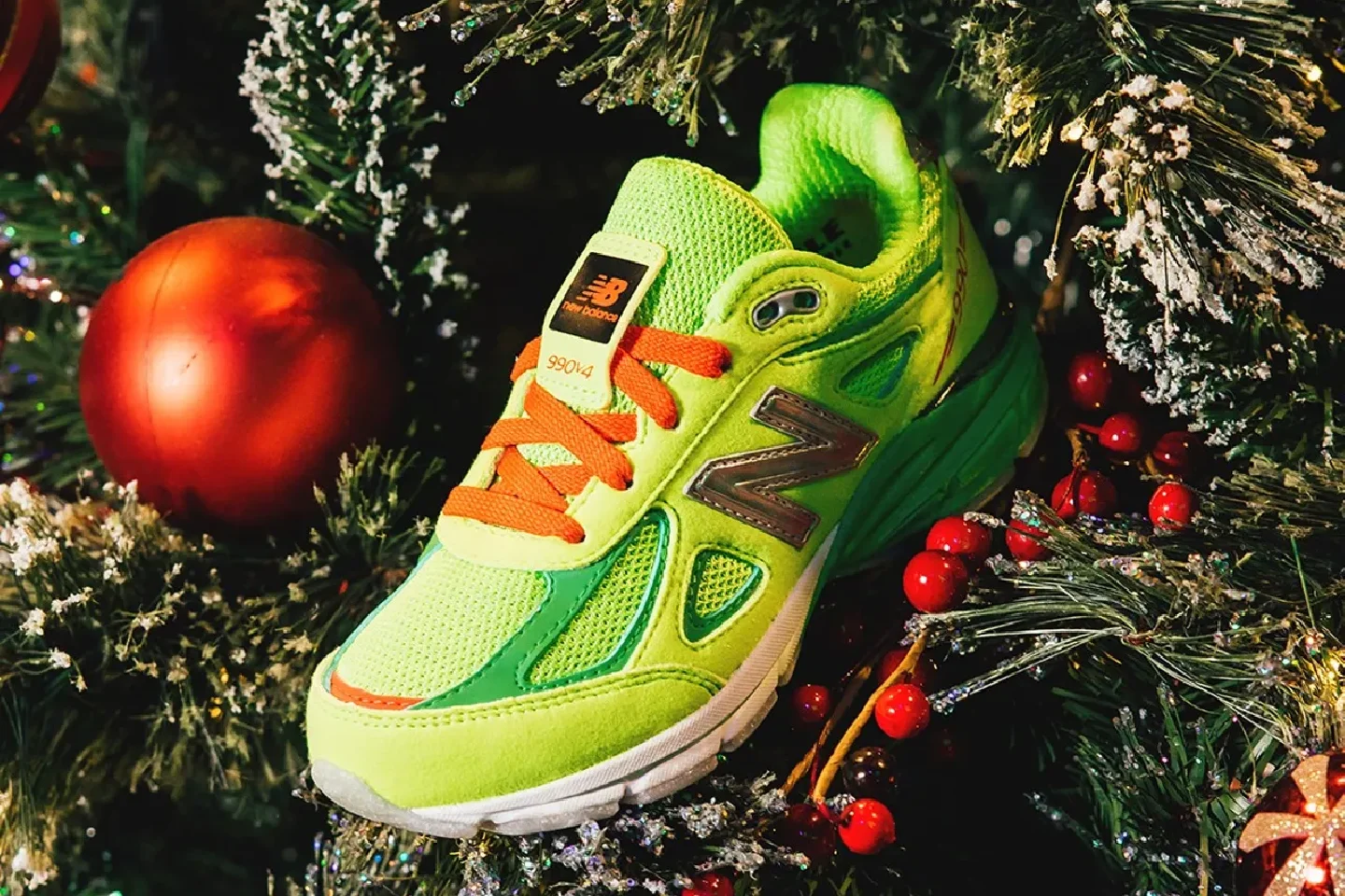 Модель New Balance 990v4 x DTLR Festive, выполненная в ярко-зеленой цветовой гамме, сохранила все черты оригинальной модели, но изменила цвета и материалы. Верх кроссовок выполнен из ярко-зеленой сетки в сочетании с красными и серебристыми акцентами, напоминающими о рождественских украшениях. Бело-зеленая межподошва Encap и серая подошва завершают образ. Если переосмысление любого кроссовка в стиле «Гринч» может показаться немного банальным, то стоит лишь провести несколько секунд перед этими кроссовками, чтобы сразу же изменить свое мнение.