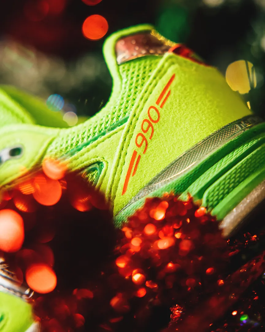 Поскольку Рождество уже не за горами, New Balance и DTLR создали идеальные кроссовки, которые не стыдно надеть на семейный обед. Ну или типа того. Магазин в Балтиморе объединил усилия с бостонской компанией для создания праздничной версии 990v4, и окрасили их в цвета того, кто никогда особенно не любил Рождество — Гринча.