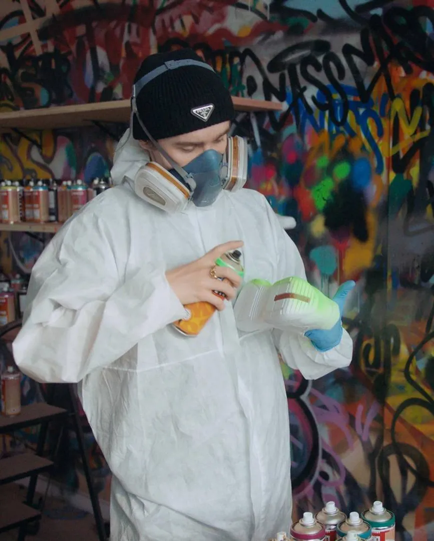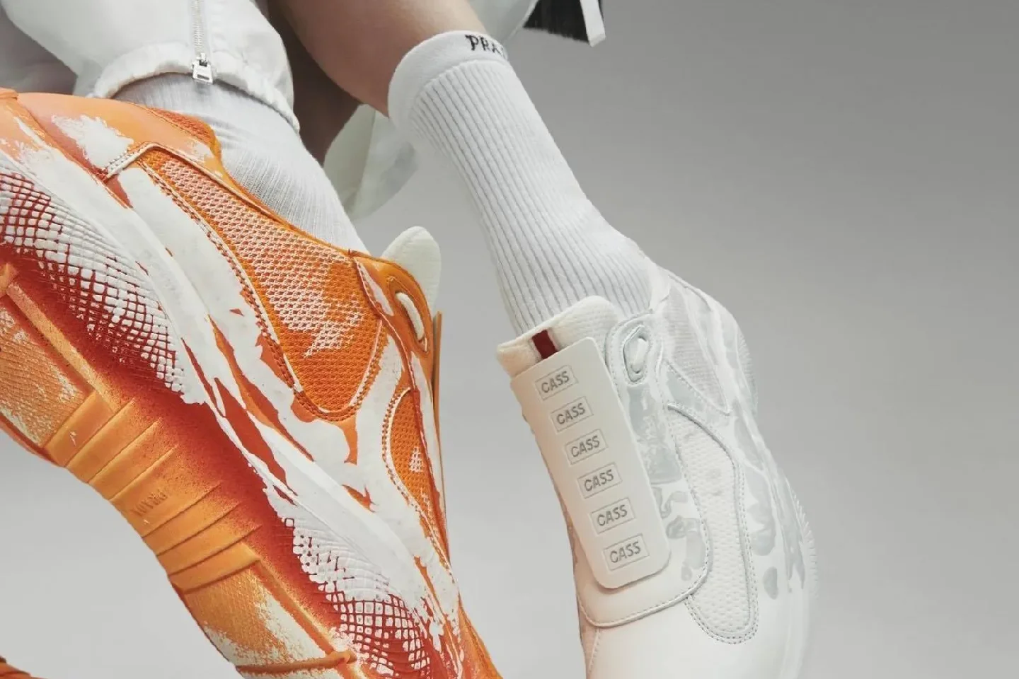 Но внимание г-жи Прада привлёк совсем другой вид подросткового времяпрепровождения. Вдохновившись семинаром, проведённый Вирджилом Абло совместно с Nike, где участники мероприятия могли раскрасить Air-Force 1, Касс начал покупать белые кроссовки и распылять на них краски в причудливых, абстрактных оттенках.
