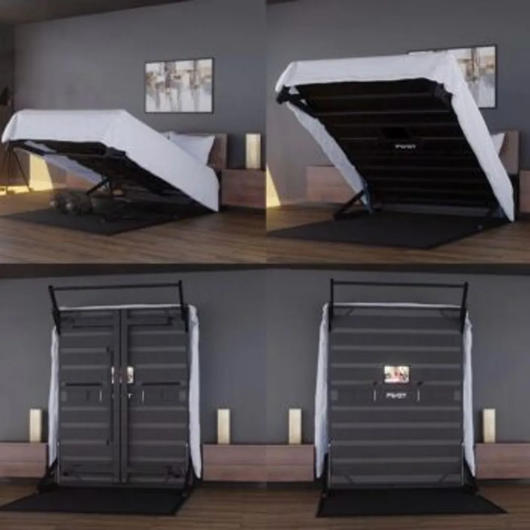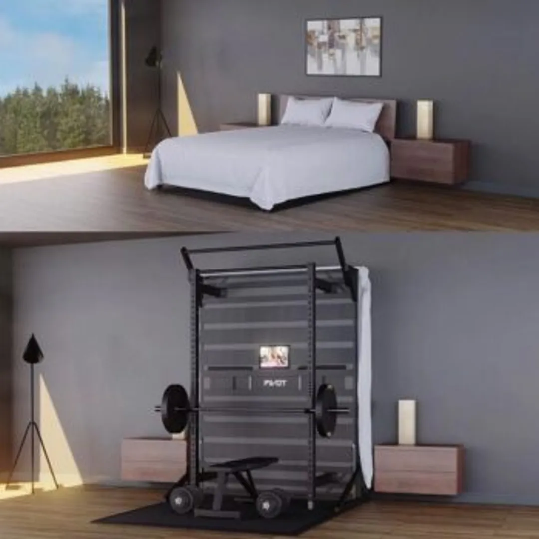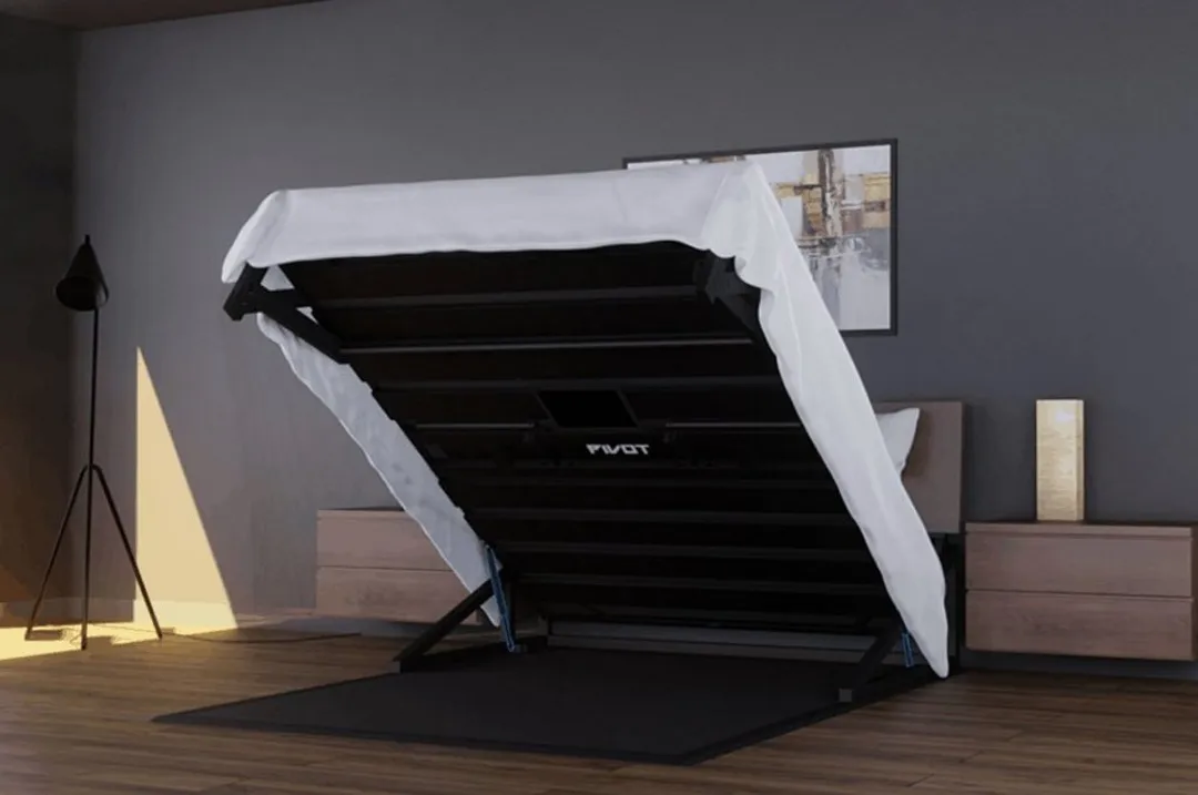 Кровать «Pivot Bed», созданная начинающим предпринимателем Колином Монтгомери, представляет собой кровать-трансформер, превращающаяся в домашний тренажерный зал. Кровать Pivot, доступная как в двуспальном, так и в большом размере, поднимается вверх и опускается вниз с помощью двух газовых амортизаторов.