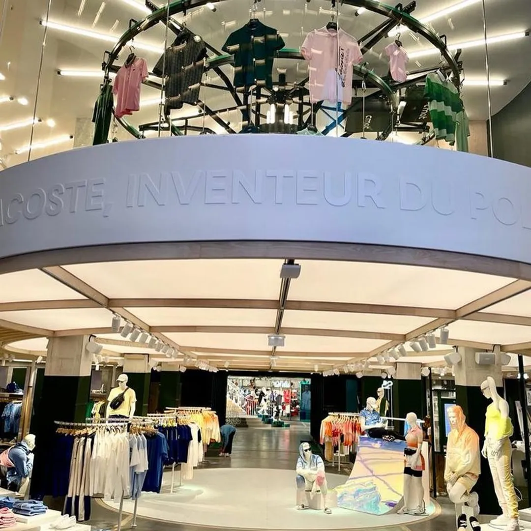 Lacoste открыл свой самый большой флагманский магазин в Париже в пятницу 20 мая. Магазин под названием Lacoste Arena площадью 1600 м2, расположенный на Елисейских полях, является первым глобальным флагманом французского бренда.