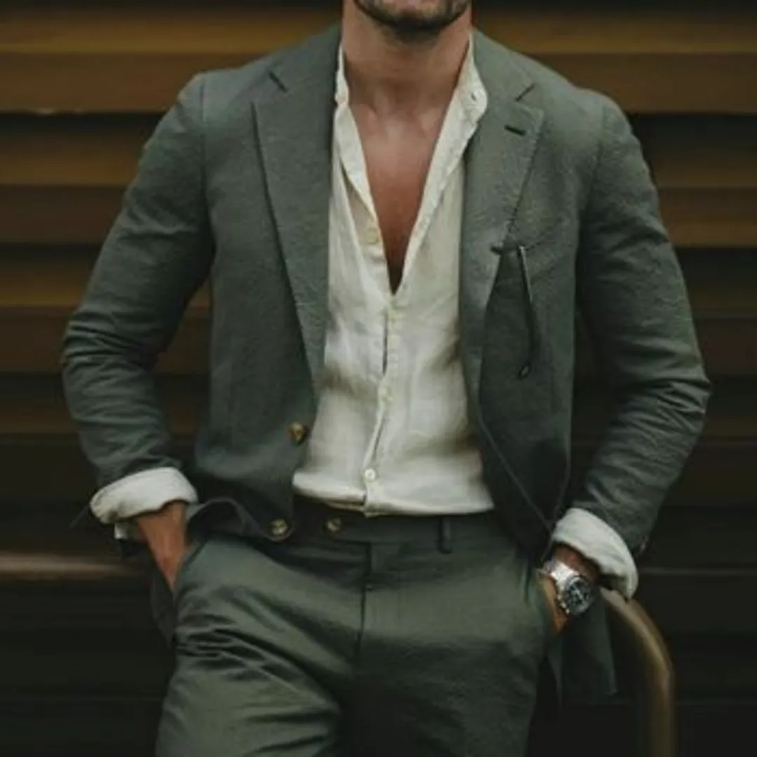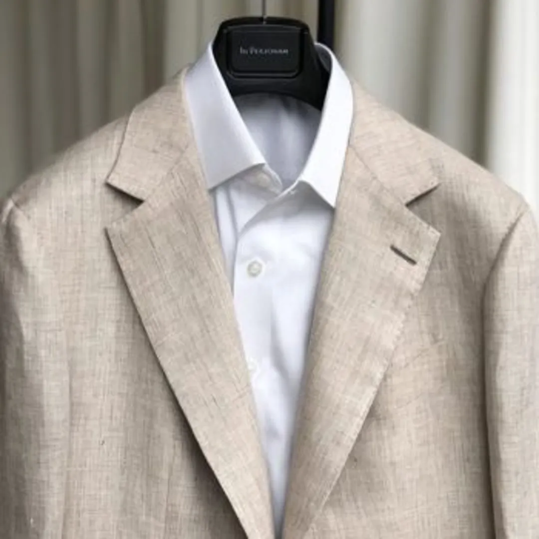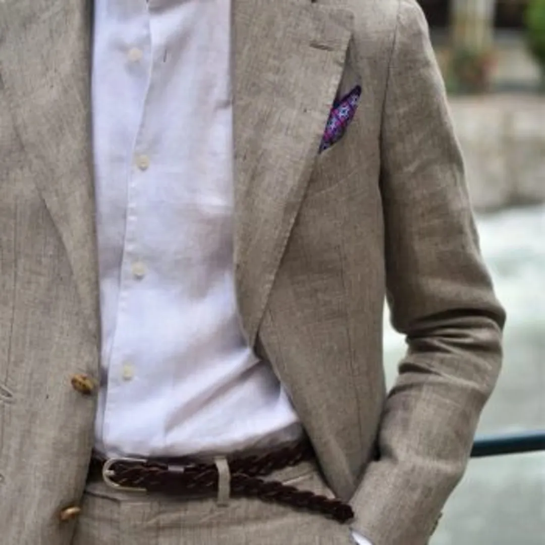 Хотя льняная ткань, более повседневная, чем другие ткани для костюмов, она все равно станет разумной заменой ваших шерстяных офисных костюмов, когда по дороге на работу из-за летнего зноя, станут проявляться пятна пота на вашей одежде.