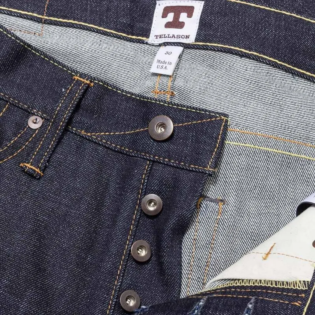 Джинсы Tellason с минималистичным стилем и фирменными задними карманами имеют явно неамериканские имена: среди них Ankara, Sheffield и Ladbroke Grove.