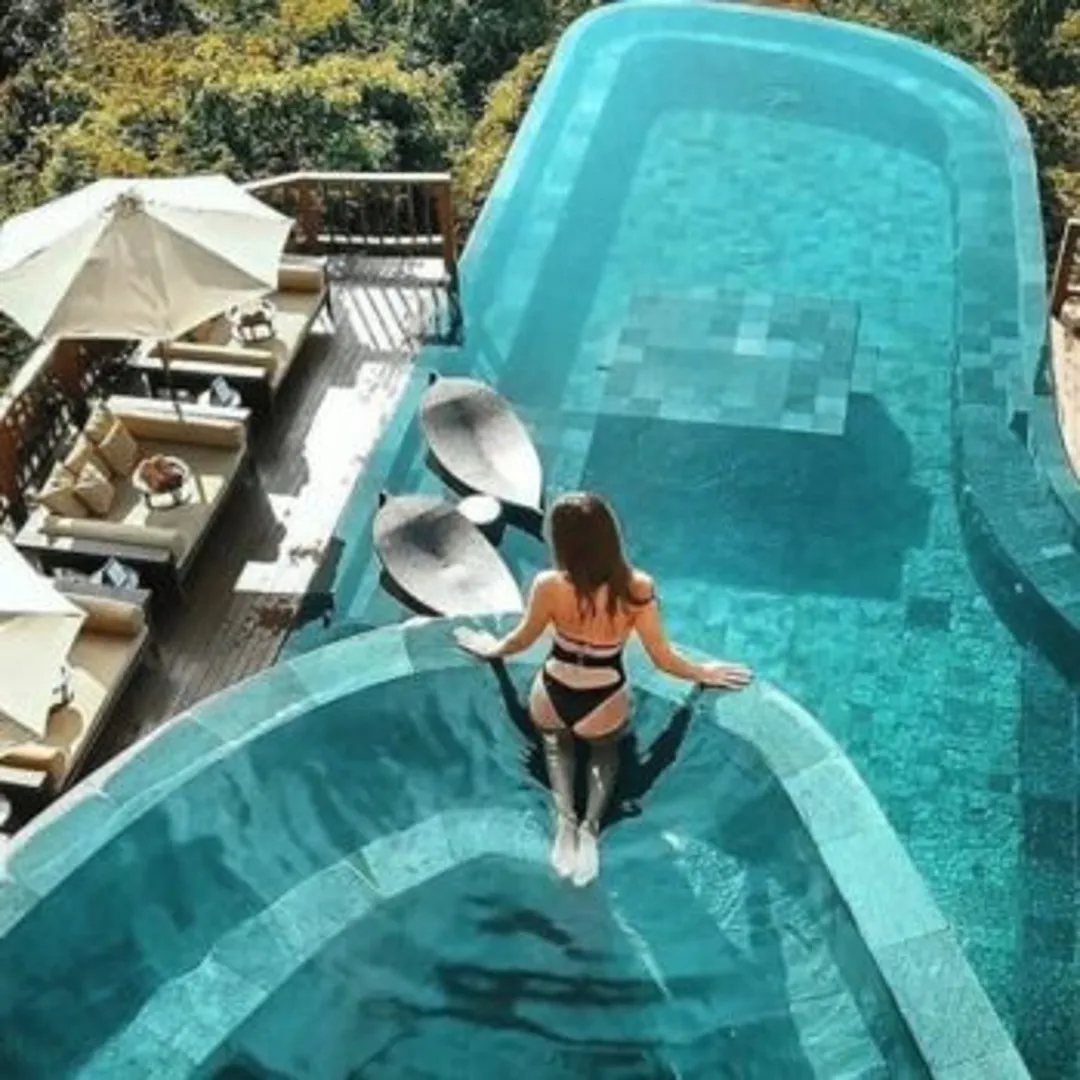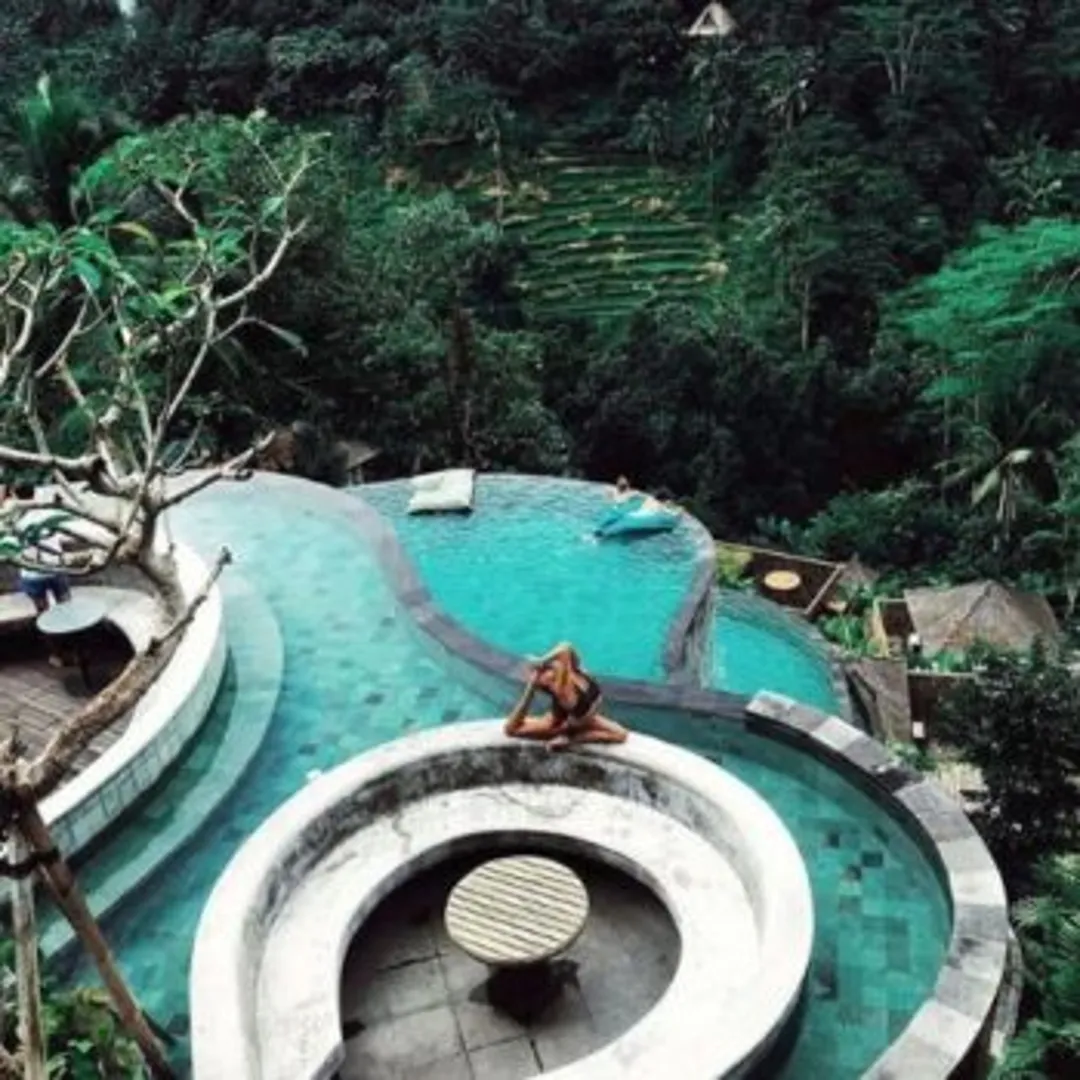 Что для вас означает понятие «дизайн отеля»? Если он будет таким как у нас, вам будет достаточно признаться, что идеальные раскопки для отдыха в джунглях были созданы не берлинскими промышленниками, а 700 местными аборигенами, использующими подножные материалы. Все 44 виллы, составляющие череду отелей курорта на Бали, потрясающе красивы и имеют свои собственные бесконечные бассейны, но все взгляды обращены к главному многоуровневому бассейну, выходящему прямо в джунгли. Поскольку отель построен на склоне холма, есть фуникулеры, которые могут вас туда переместить, смотрится лениво, но выглядит очень круто.