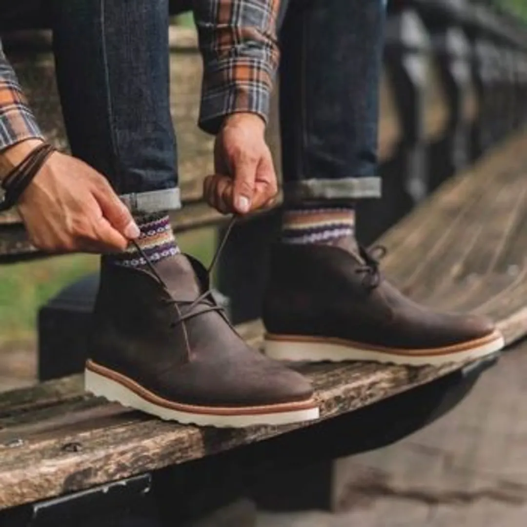 Традиционно сшитые из замши на основе телячьей кожи без подкладки и тонкой подошве, ботинки Чукка сегодня представлены во всех видах тканей и цветов. Что бы вы ни выбрали, этот стиль ботинок, занимающий мало места в современных шкафах, достаточно универсален, чтобы его можно было носить в офисе и после работы. Они являются одними из лучших ботинок, которые можно носить с простыми джинсами, но также вы можете сочетать их в стиле высшего класса.