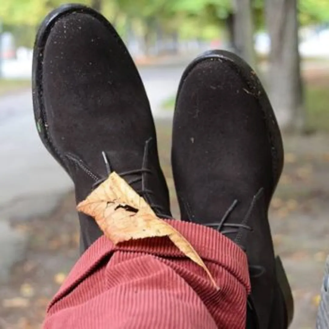 Хотите выглядеть с ними стильно? Придерживайтесь более темных оттенков и избегайте контрастных цветных подошв. Черные замшевые пустынные ботинки шикарно смотрятся с простыми брюками с облегающим фасоном и рубашкой на пуговицах.