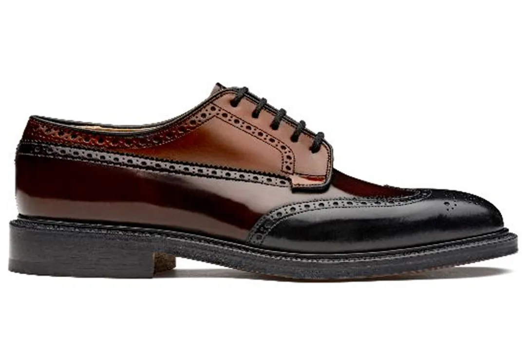В американском люксовом лейбле используется только стиль длиннокрылых Брог, в котором перфорация на носке распространяется до задней части обуви. Фирменный трехцветный бренд даже выглядит в форме каблука.