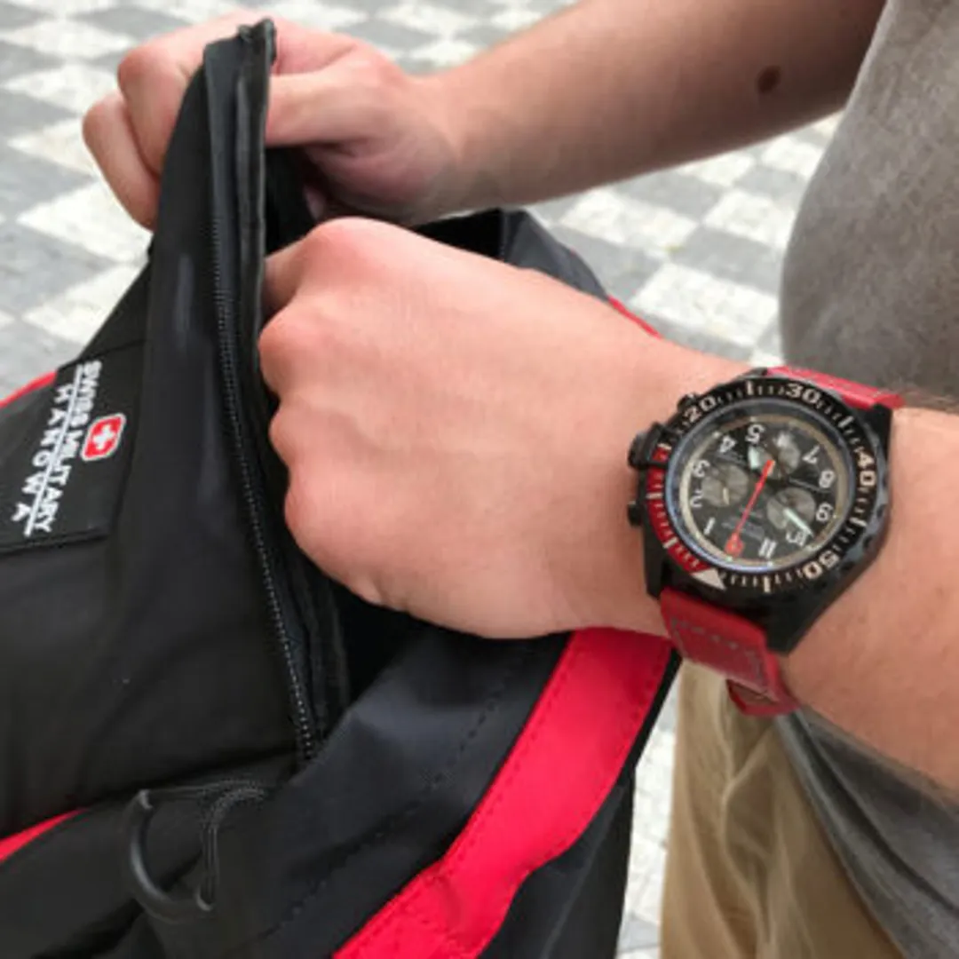 Эти смелые карбоновые часы с кварцевым механизмом, сапфировым стеклом и водонепроницаемостью 100 метров идеально подходят искателю приключений. Носите их в путешествиях или используйте, чтобы подчеркнуть любой повседневный или полуформальный наряд!