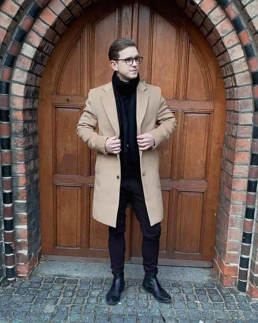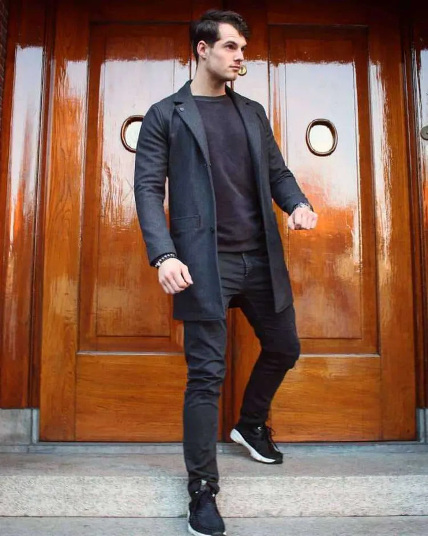 Вы можете сделать образ немного спортивным, надев черную толстовку с капюшоном под длинную шерстяную куртку и дополнив черной шапкой; представляющее идеальное сочетание повседневного и нарядного.