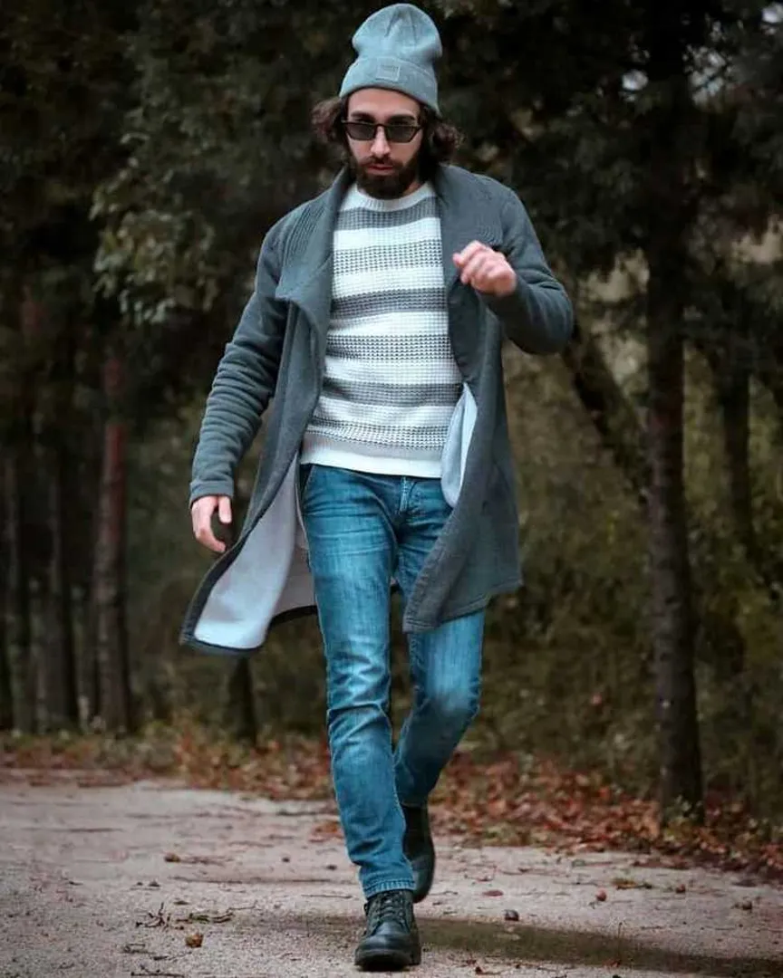 Если вы нашли шерстяную куртку с привлекательным рисунком, например, в клетку, объедините ее с черными джинсами скинни, а остальную часть наряда оставьте простой. Наденьте ботильоны аналогичного цвета.