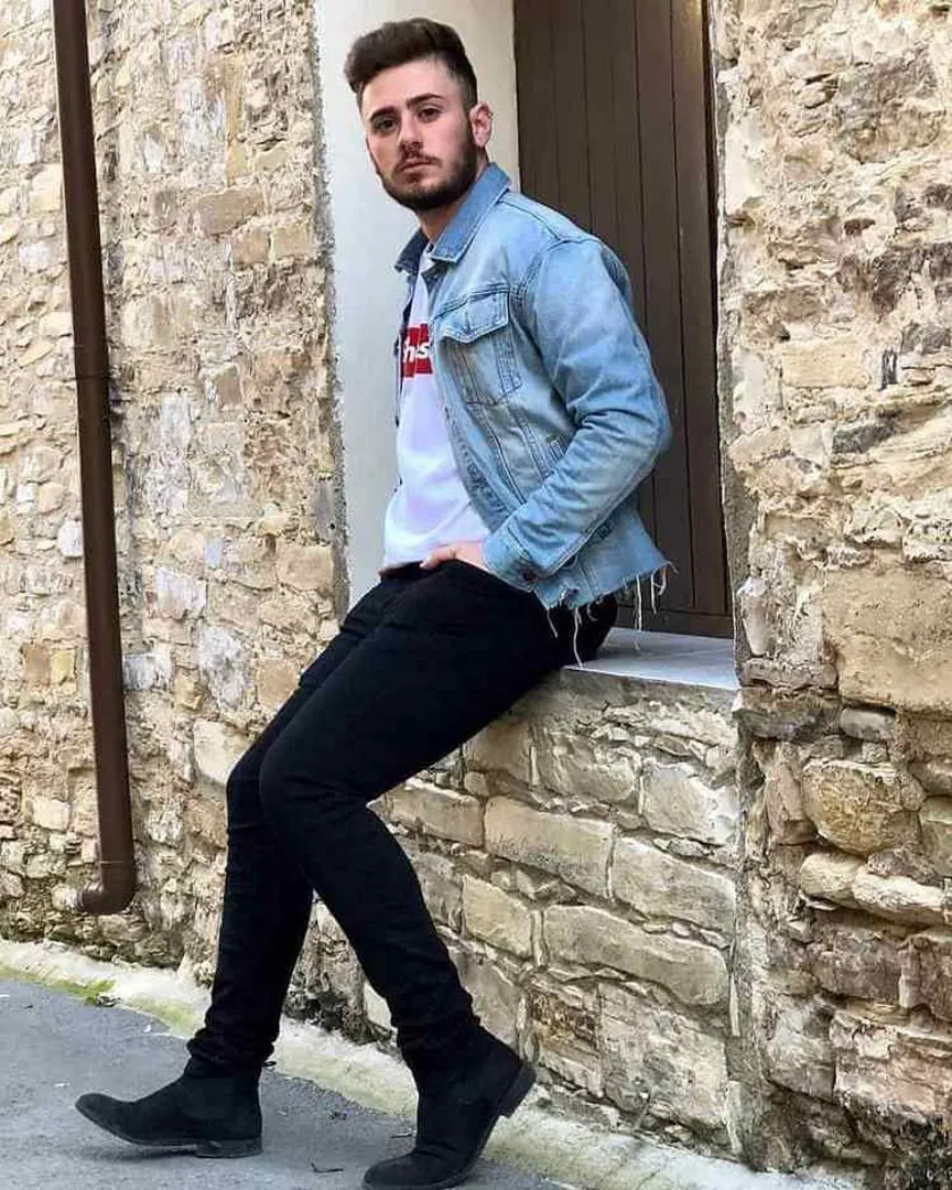 Или попробуйте противоположности, надев тяжелый черный джинсовый пиджак поверх простой белой футболки.