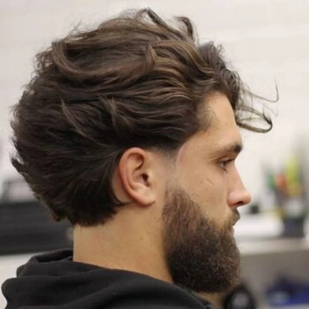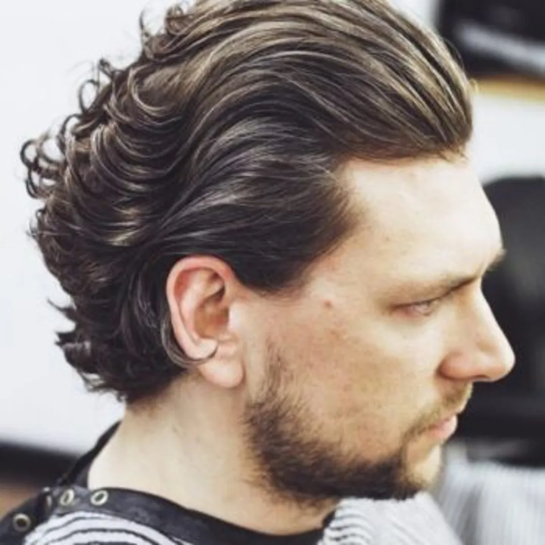 Этот вид в основном представляет собой более длинную версию «штор», где модель имеет вьющиеся волосы. «Для этого нужны слои, при этом самый большой длины должен находится сзади», — говорит Пейтман. «Перед началом стрижки, необходимо все досконально проверить. Длина должна варьироваться в зависимости от того, насколько тугой завиток, он должен находиться на уровне скулы спереди. Убедитесь, что так и есть, прежде чем стричь концы локонов. Если волосы мужчины очень густые, срезание слоев должно уменьшить вес и улучшить формы».