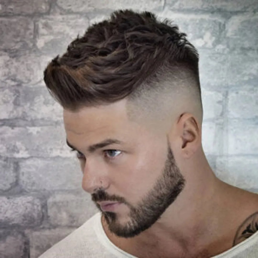 Для этого стиля попросите у парикмахера «стрижку с плавными переходами, с коротко стриженным затылком и боками, сверху оставить побольше», — говорит Пейтман. «Сохраните четко видимую линию в точке плавного перехода и перейдите примерно с первого на третий уровень электромашинки, сохраняя одинаковую длину с бородой. Для придания стиля используйте сильный матовый воск, такой как Bumble and Bumble Sumotech или Davines Strong Dry Wax, чтобы выделить определившуюся текстуру волос».