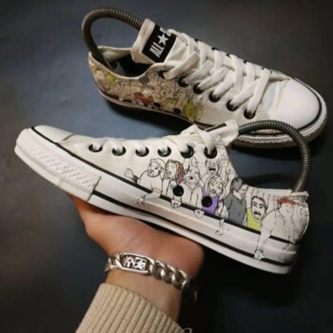 Вы даже можете создать свой собственный дизайн в Интернете! Нам нравится чистый классический белый цвет, так как он подходит буквально ко всему. Обратите внимание: если вы никогда не владели парой Chuck Taylors, подобрать размер может быть немного сложным для новичка. Обычно они на полразмера меньше, поэтому заказывайте предусмотрительно, чтобы не ошибиться.