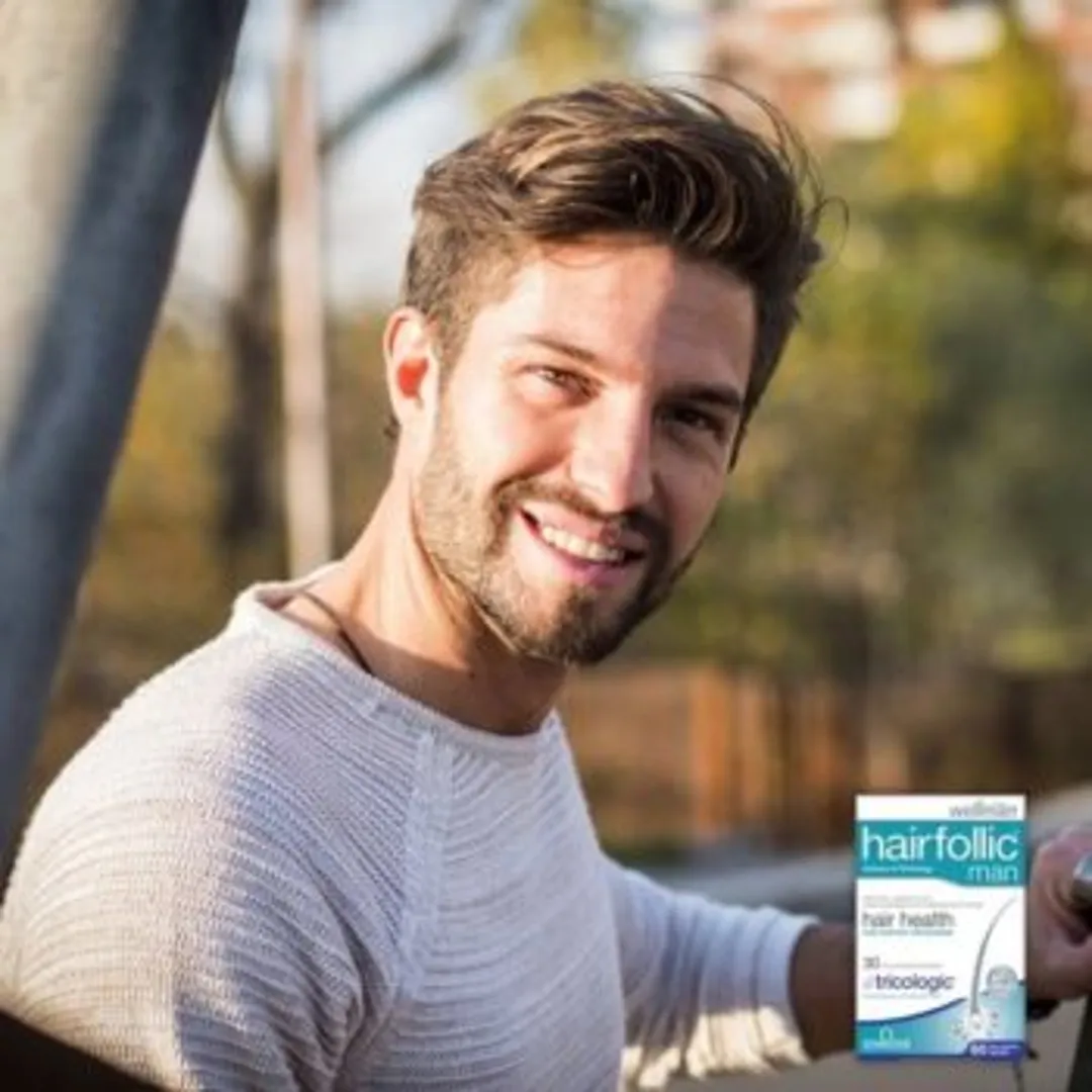 Если вы обеспокоены тем, что ваш рацион ниже нормы, подумайте о том, чтобы принимать ежедневную добавку, направленную на укрепление здоровья волос, например, Hairman’s Hairfollic Man.