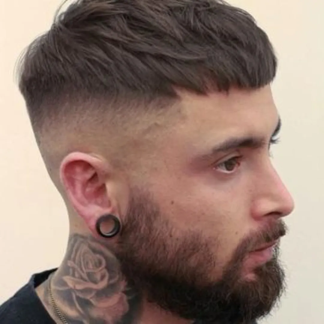 Стиль, который последние годы приобретает возрождение популярности в Европе, даже с парнями, которым это не нужно, французский урожай — это идеальный стиль для борьбы с формой «М», создаваемой залысинами в передней части головы.