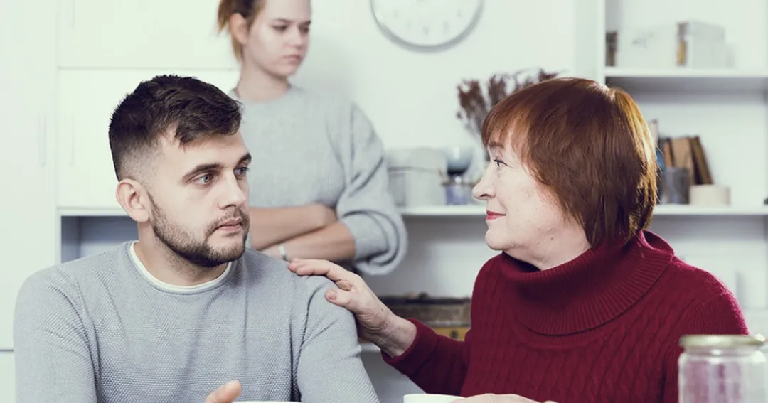 Мужчина может любить и уважать мать, помогать ей, но на первом месте должно стоять отношение к жене. От женщины в таком партнерстве требуется чуткость и понимание. Она должна построить корректные взаимоотношения со свекровью, но не стоит забывать о себе: от мужа нужно мягко, но упорно требовать уважения своих интересов. Так что женщина должна стать дипломатом.