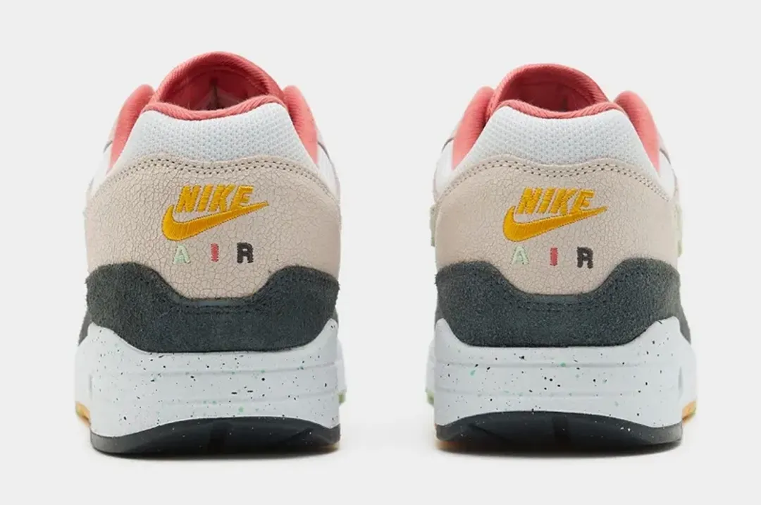 Снизу Air Max 1 опираются на промежуточную подошву из пеноматериала с крапинками. Эта подошва пропитана любимой технологией Nike Air — той самой, которая используется в одних из самых удобных кроссовок в мире. В довершение ко всему на пятке вышита надпись Nike Air, выполненная в ярких оттенках, что всегда интересно!