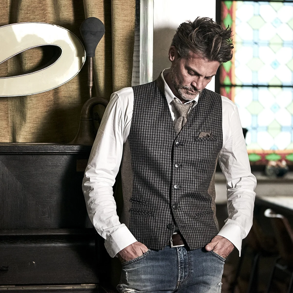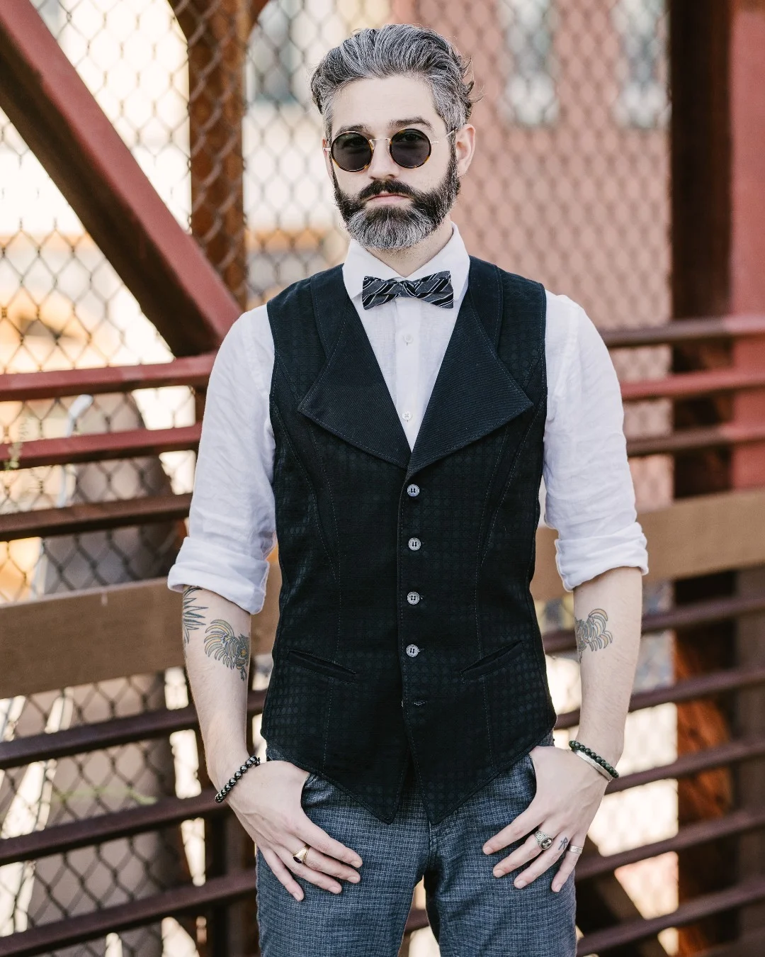 Особенность жилета в том, что он сделан из двух разных тканей: подкладки для задней части и богатой, дорогой ткани для передней части. Всегда выбирайте такие ткани, как твид, вельвет или хлопок, и избегайте цветов и тканей, которые трудно подобрать или которые слишком бросаются в глаза.