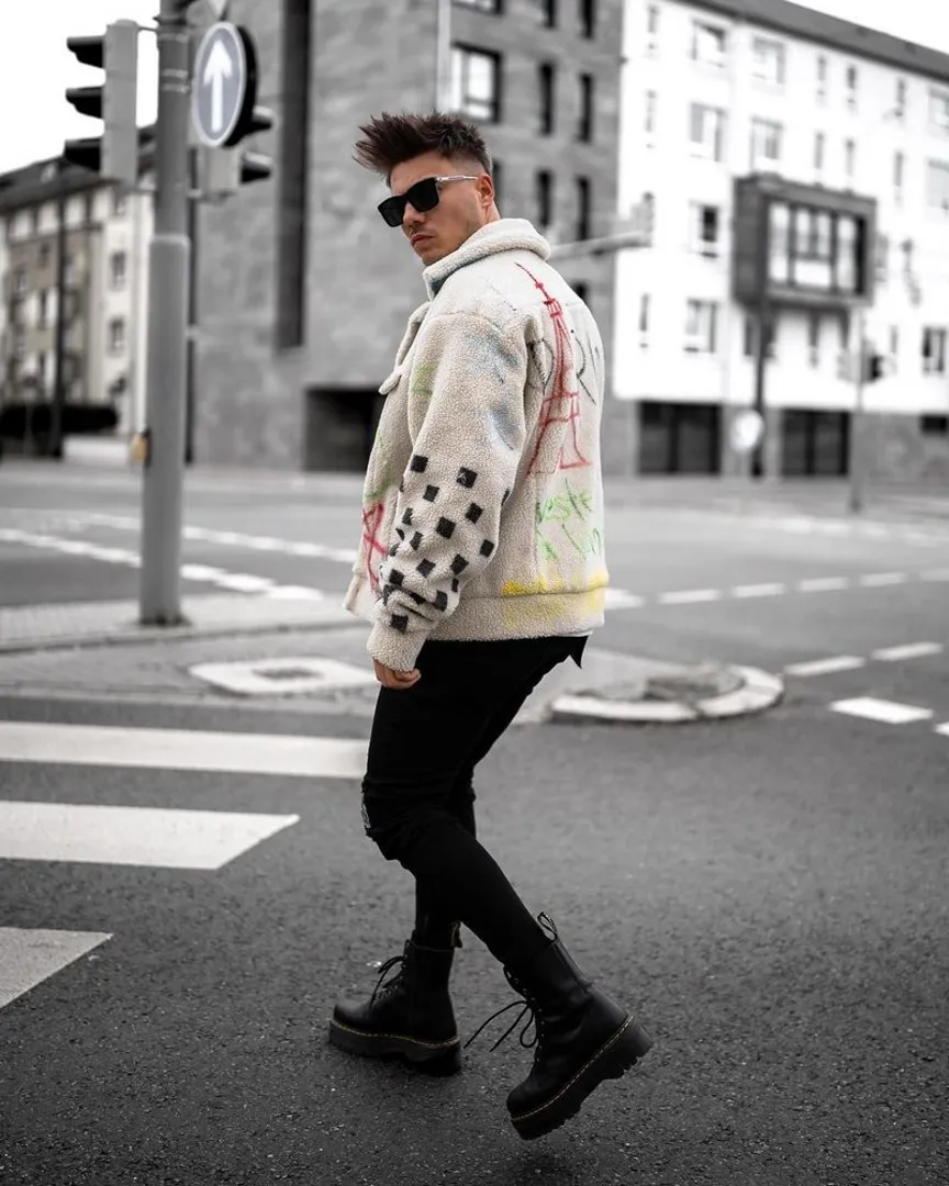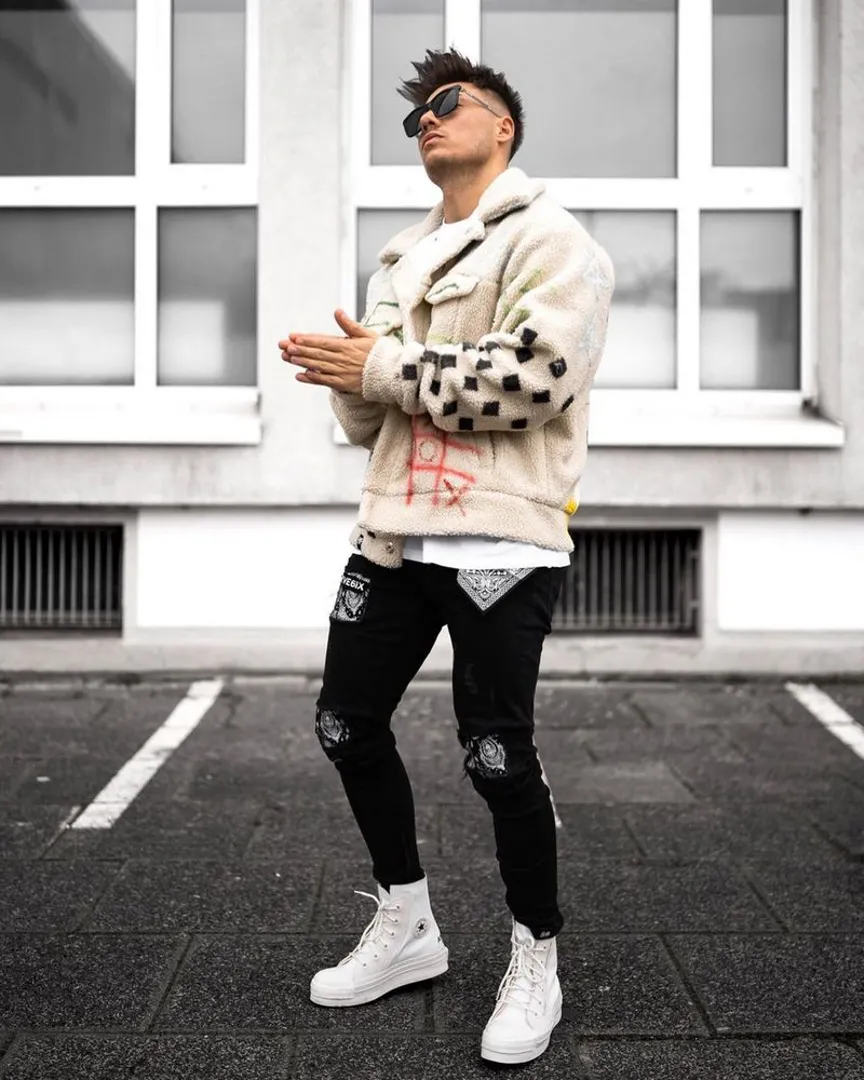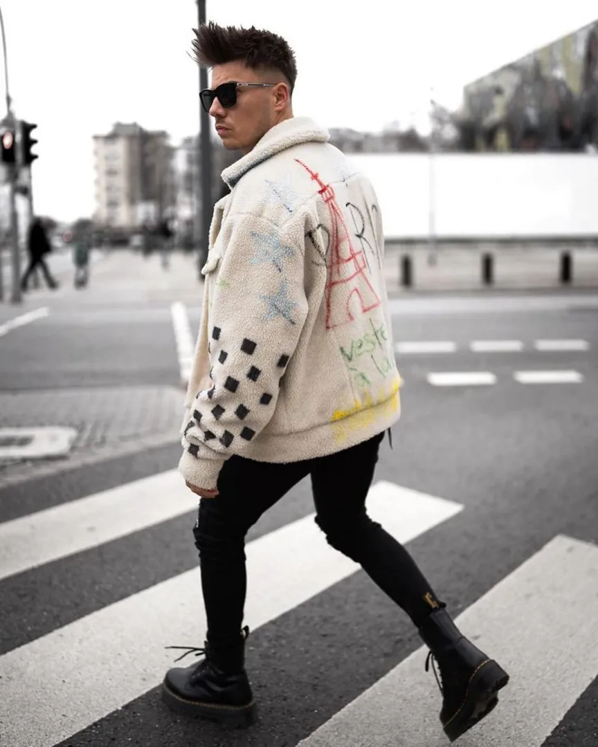 Благодаря своим объемным пропорциям и тактильной отделке, флис, пожалуй, лучше всего проявляет себя, когда он является яркой вещью. Ткань, естественно, немного бросается в глаза, напоминая овчину или мех, так что примите к сведению. Выберите толстую или слегка подбитую флисовую куртку и попрощайтесь с холодом навсегда. Носите ее с такими надежными вещами, как вельветовые брюки, водолазка и белые кроссовки, и вы окажетесь в выигрыше.