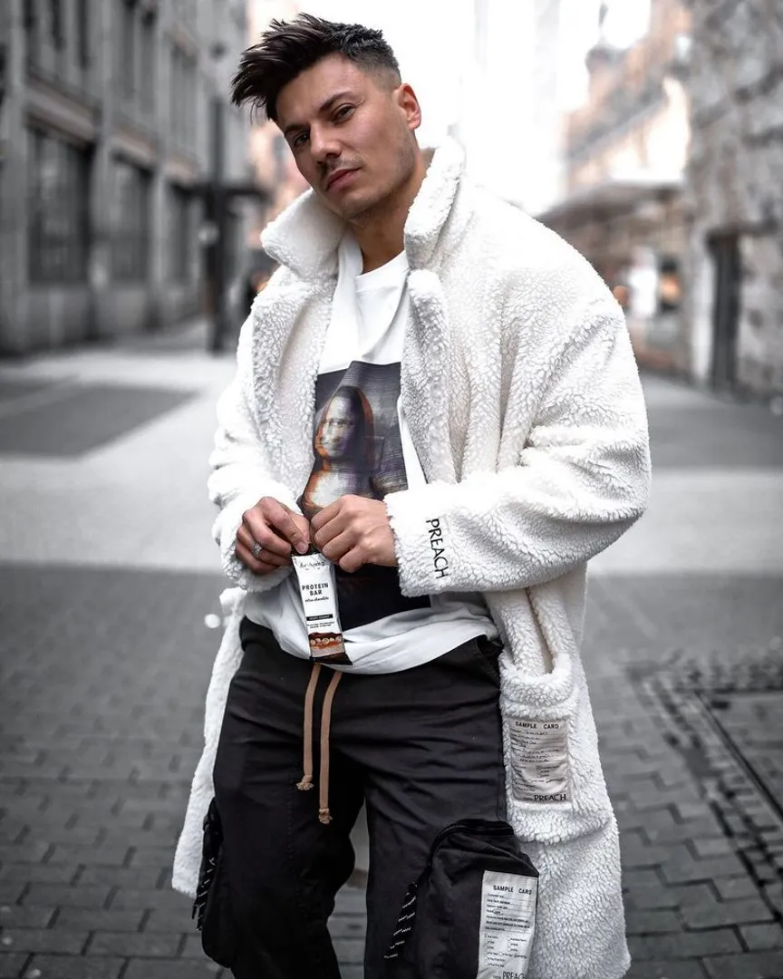 Однако именно совместимость ворсистого материала широким спектром нарядов привлекает сегодня больше всего. Да, он родился на туристической тропе, но и на улице он чувствует себя как дома. Чтобы понять, насколько далеко шагнул флис, отправляйтесь на Сэвил Роу. Такие бренды, как Gieves & Hawkes и портные, известные своими сшитыми на заказ костюмами, теперь тоже являются владельцами мехового стиля.