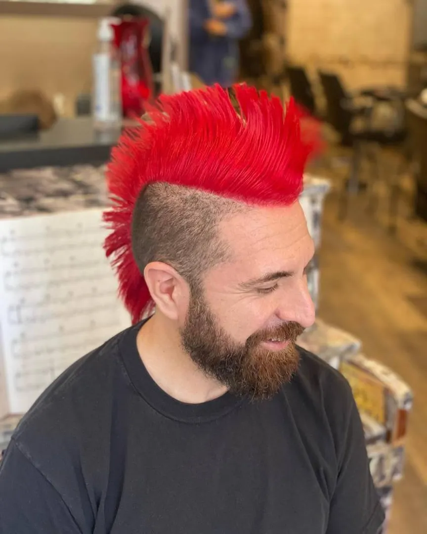 Ирокез с окрашенными волосами – для тех, кто хочет отважиться на большее. Взгляд, полный решимости, не правда ли?