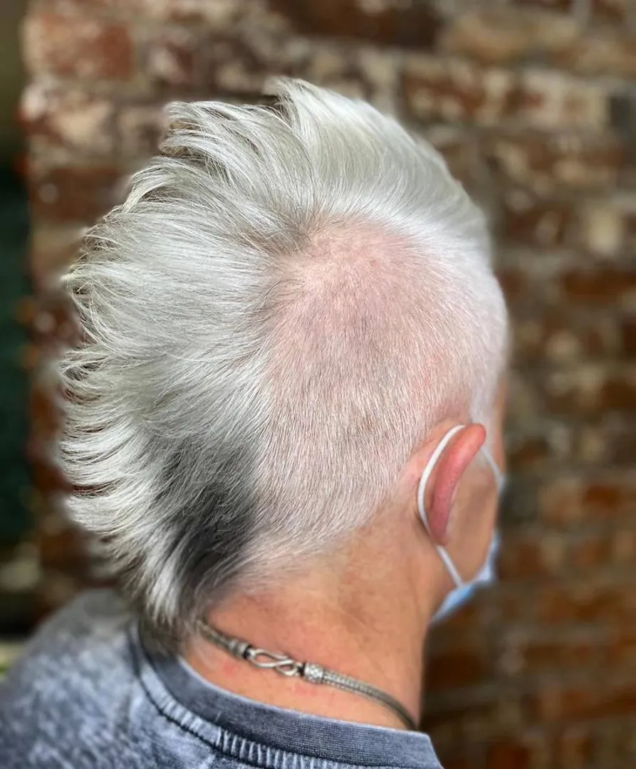 Вы можете быть очень смелым, оставив лишь тонкую полоску волос на макушке, или выбрать что-то более сдержанное, обрезав по бокам волосы на расстоянии двух пальцев. Все зависит от вас.