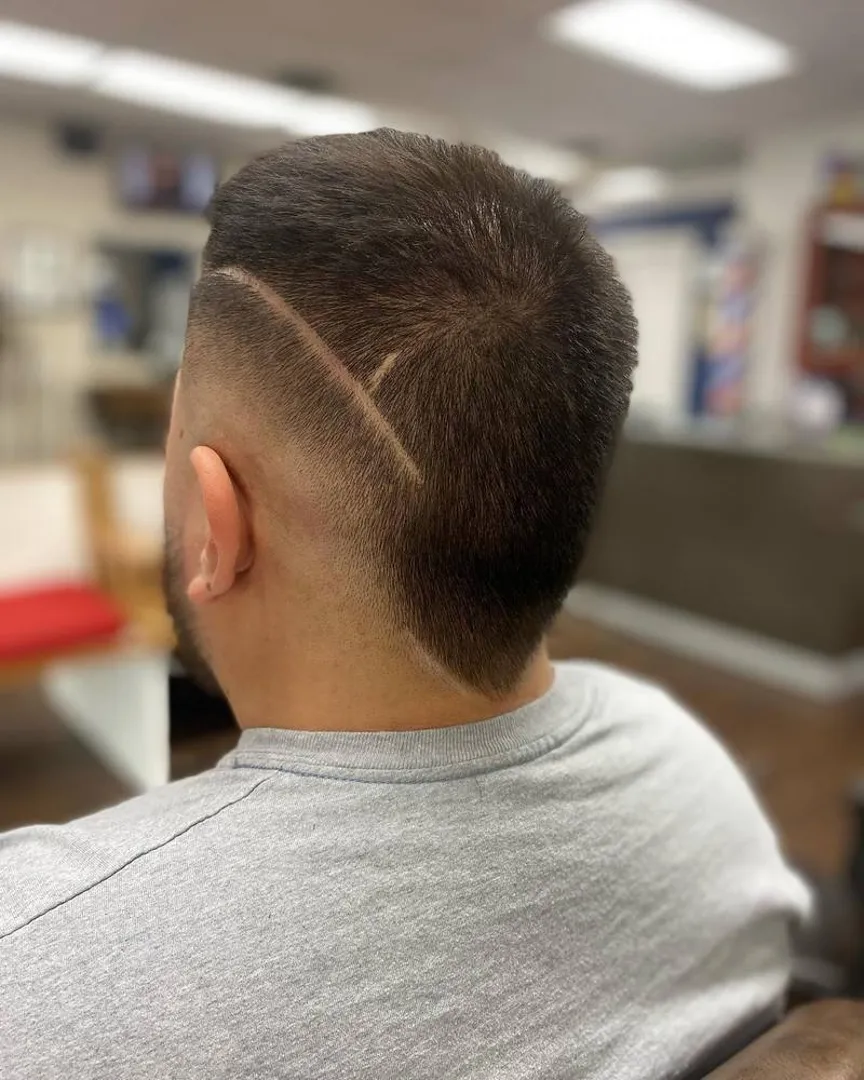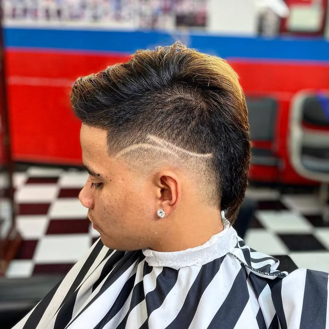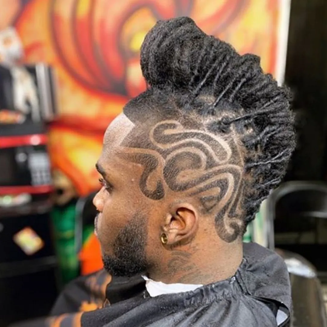 А если пробора недостаточно, существует также версия стрижки ирокез для мужчин с рисунком. Дизайн выполняют с помощью лезвия, который придает стрижке более фанковый оттенок. Этот стиль подходит для всех возрастов. Вы можете даже поиграть с интенсивностью градиента, создавая свой полосатый дизайн.