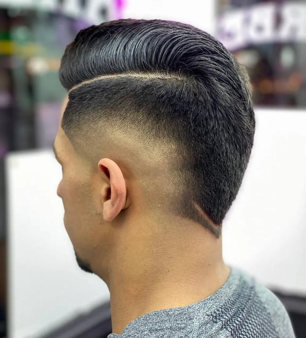 Стрижка ирокез с полоской – это стрижка с резким пробором между верхней и боковой частью. Хорошо обозначенный пробор придает стрижке суперстильную деталь. Она также отлично смотрится с более длинными прядями на макушке. И даже можно сделать двойной пробор.