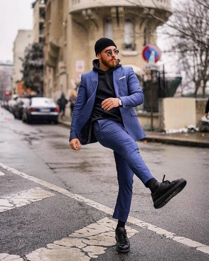 Безусловно, толстовка с капюшоном в комплекте с кроссовками и прямыми джинсами является надежной и эффективной парой. Однако если вы хотите придать образу больше остроты, попробуйте надеть толстовку под неструктурированный костюм для создания наряда, разрушающего традиционные правила.