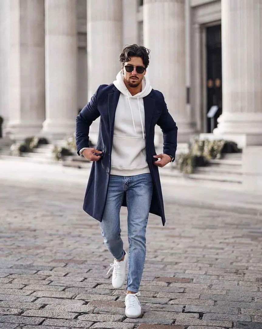 В настоящее время наблюдается настоящий переход к одежде в стиле «элегантный с простым», так что сочетайте толстовку с брюками с широкими штанинами или длинным формальным пальто.