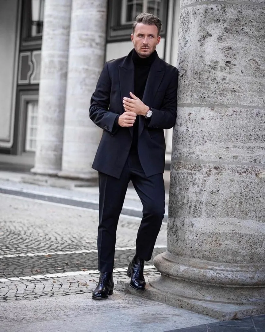 Если вы цените удобство и практичность стиля Смарт кэжуал, вам понравится сочетание темно-синих джинсов с черными оксфордами, темным трикотажем и пиджаком в тон. Замшевый бомбер или шерстяной овершот также хорошо подойдут.