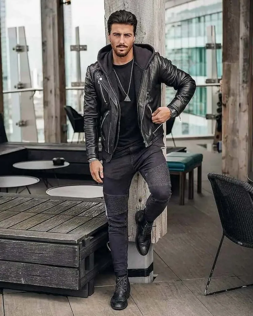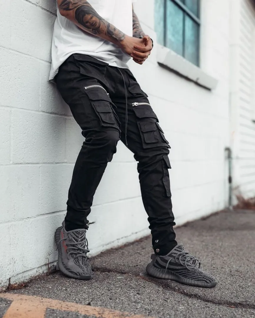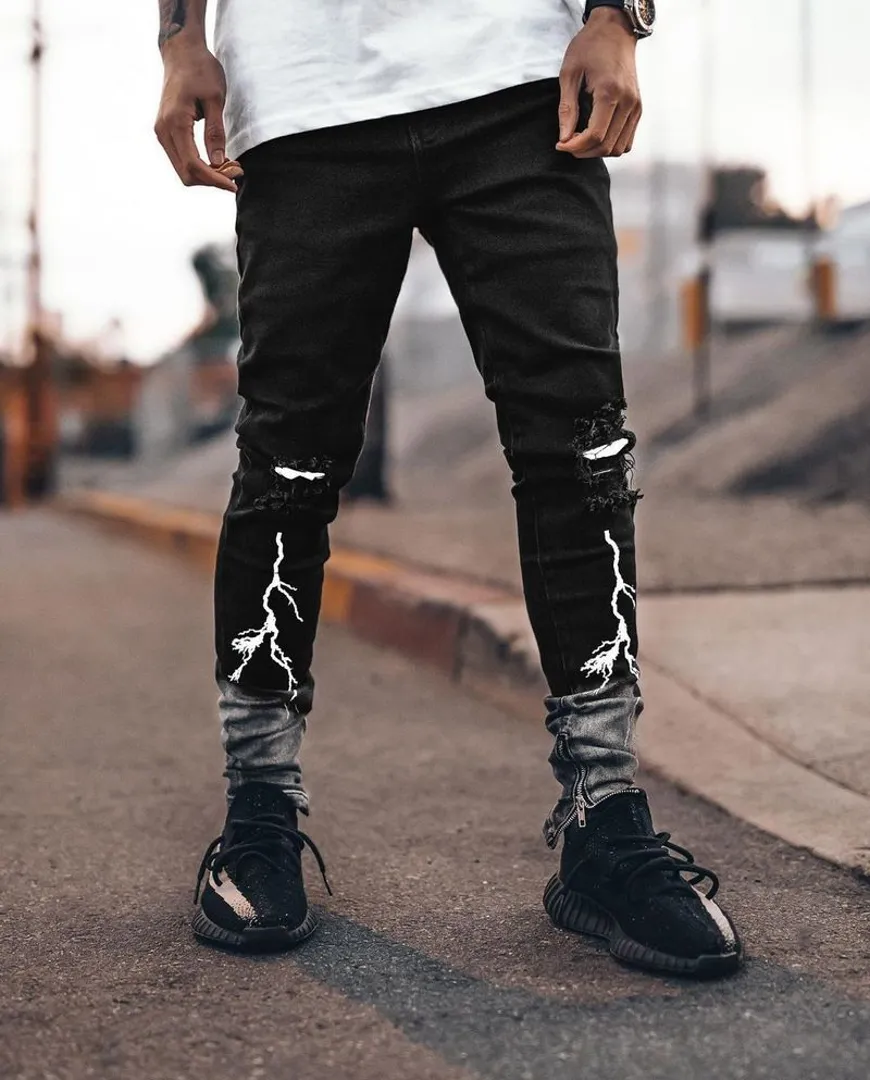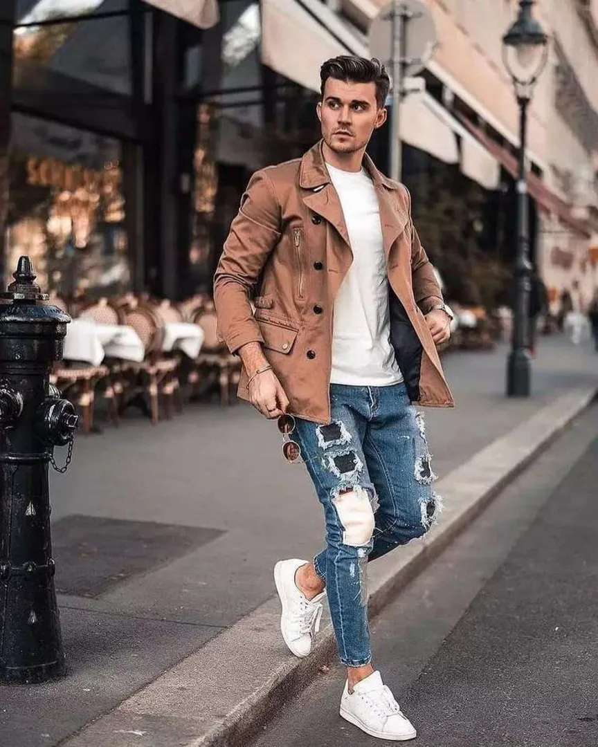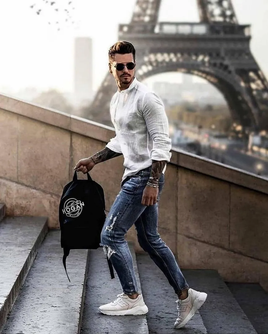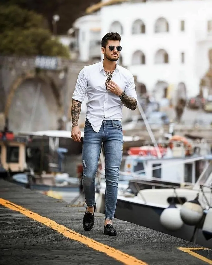 Составление аутфита – вопрос сугубо индивидуальный. На деле всё зависит от того, какая у вас фигура и приверженцем какого стиля вы являетесь. Если вы предпочитаете носить обтягивающие модели, то верх желательно уравновесить дополнительным объёмом. Для этого отлично подойдут свитера грубой вязки, всевозможные худи, просторные рубашки в крупную клетку, а также просторные базовые футболки белого или серого оттенка. Самая подходящая обувь к обтягивающим моделям – кеды, мокасины, лоферы и даже массивные ботинки.