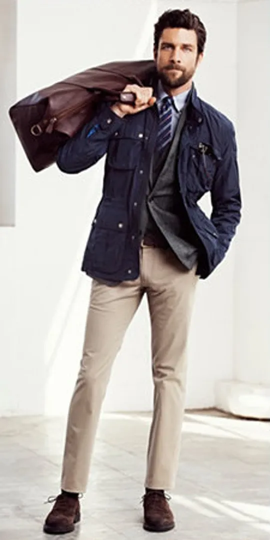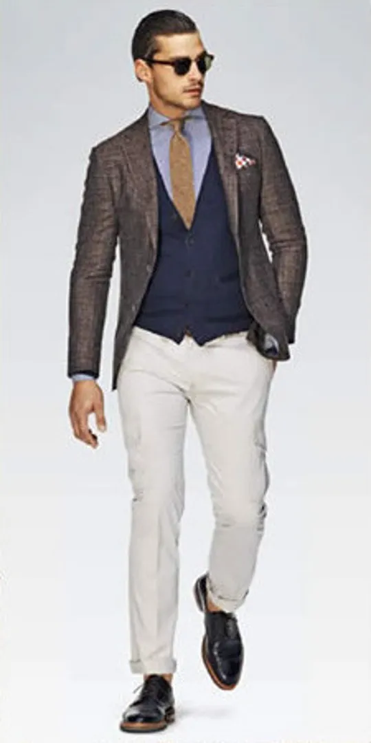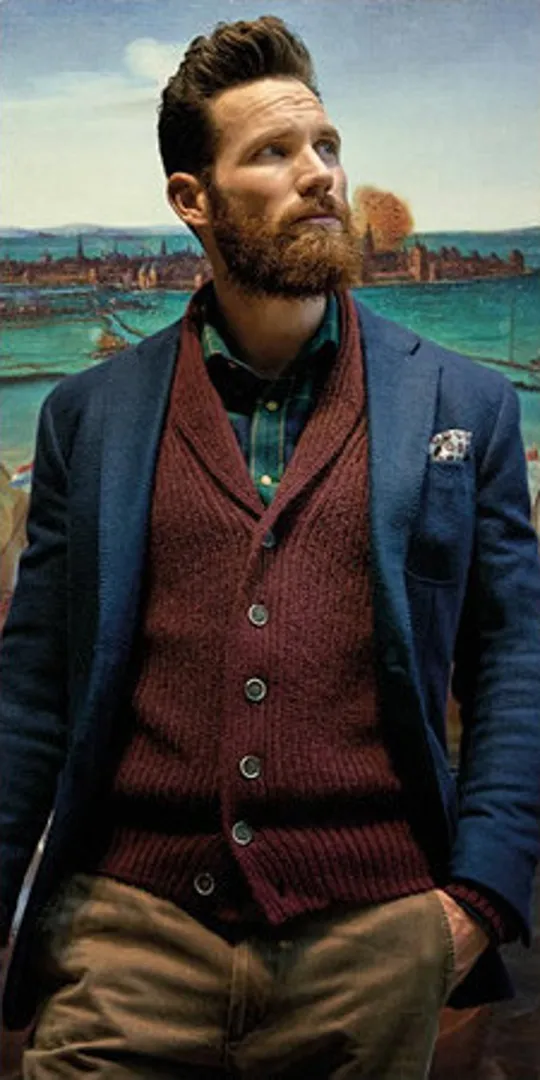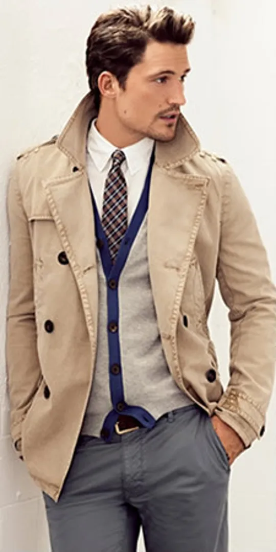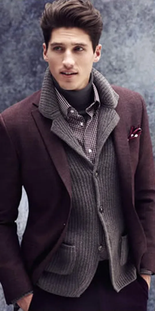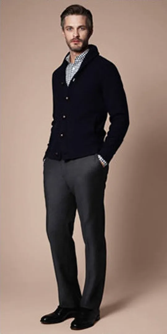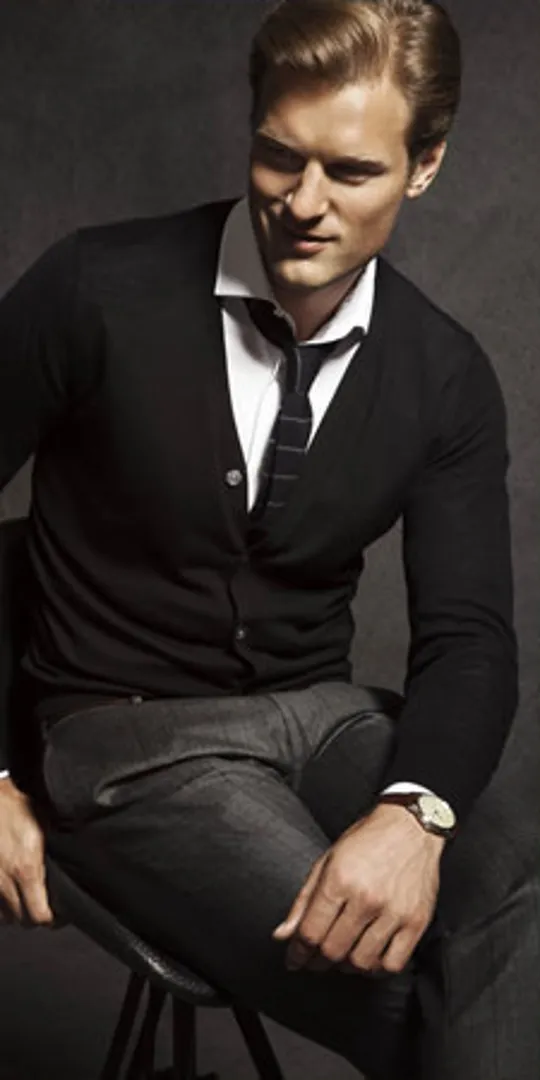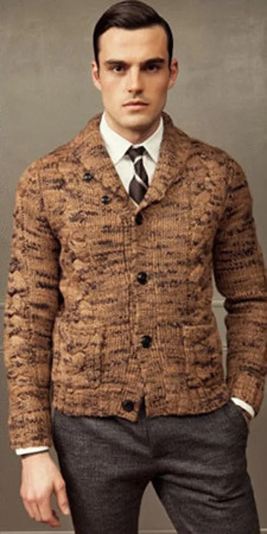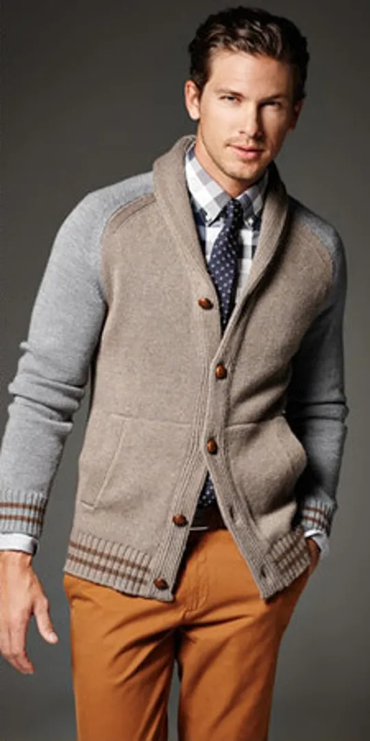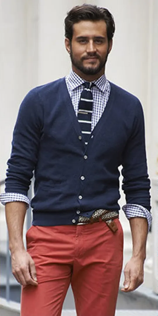 Точно так же, если вы предпочли выбрать узорчатый кардиган, постарайтесь, чтобы рубашка и галстук были максимально простыми, и пусть кардиган за всех говорит. Ищите темно-синие, серые и, особенно, когда наступит весна, верблюжий или шерстяной, и вы не ошибетесь.
