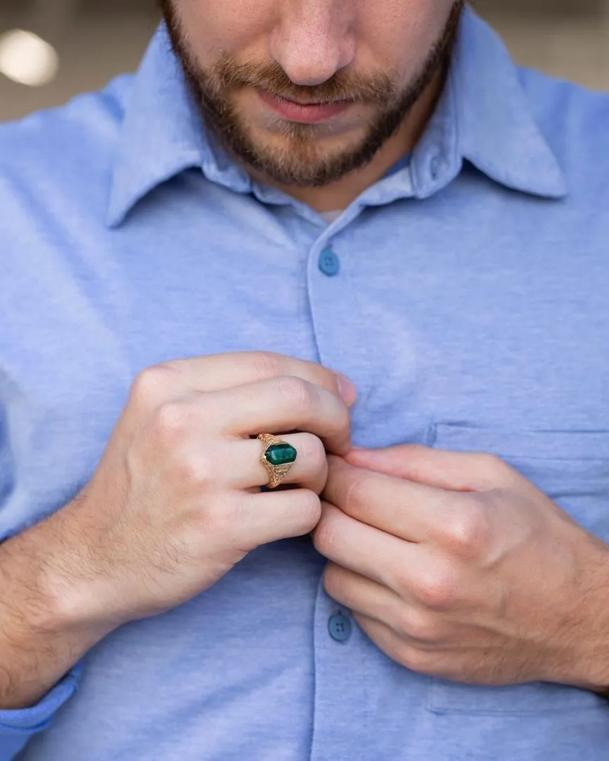 Любое стильное заявление выглядит лучше всего, когда оно принадлежит только вам. Когда мужчина носит украшения, в которых не чувствует себя комфортно, это заметно. Кольца поначалу могут казаться странными, физический вес заставляет стесняться. Поэтому прежде чем покупать, попробуйте и выбирайте только то, с чем вы уверены, что сможете справиться. И если для этого придется начать с чего-то едва заметного, пусть так и будет.