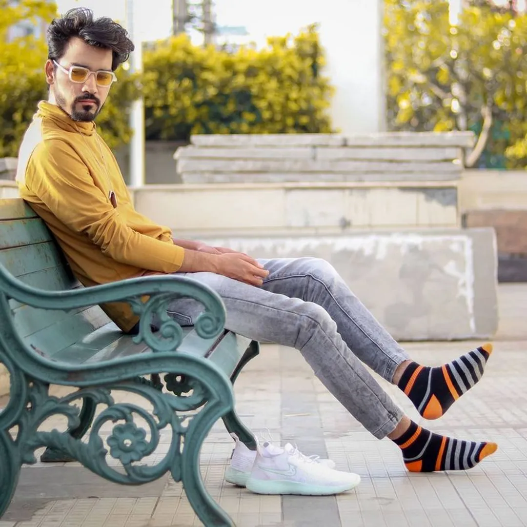Еще совсем недавно носки было принято скрывать от любопытных взглядов, но времена изменились и мужская мода на носки тоже. Для стильного мужского образа обязательно наличие в гардеробе не только однотонных, но и цветных моделей. Любой мужчина, независимо от возраста, опыта и положения в обществе, хочет быть интересным, современным и привлекательным. В этом ему помогут модные модели повседневных носков, которые привлекают пристальное внимание к своему обладателю.