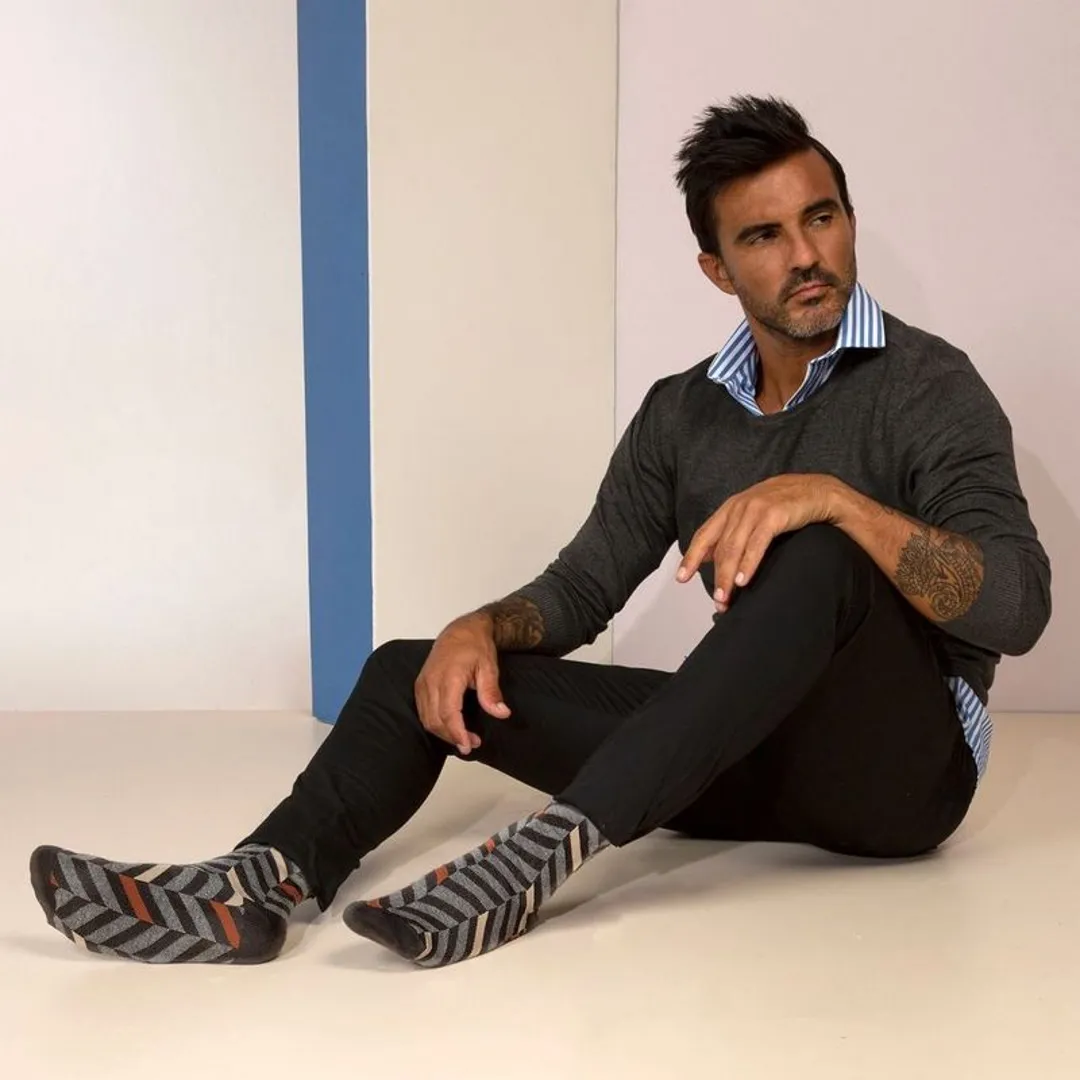- Выразительные носки – основной акцент во всем сдержанно-нейтральном наряде. Это может себе позволить только очень смелые, напористые мужчины.