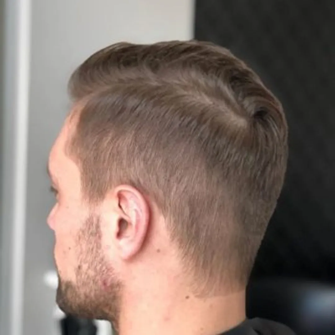 Что касается того, какой длины должны быть волосы на боках. Рекомендуем определиться в точке пробора, где волосы естественным образом делятся между верхней и боковыми сторонами. Обычно в этом месте мужчины начинают терять волосы, поэтому, если вы один из тех кому не повезло, имейте в виду, что пробор для вас может зрительно расширить лысеющий участок.