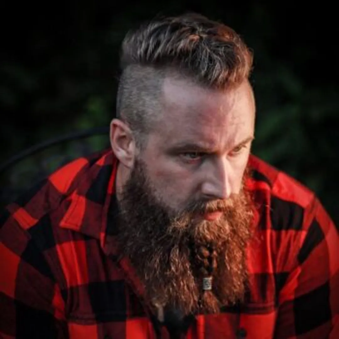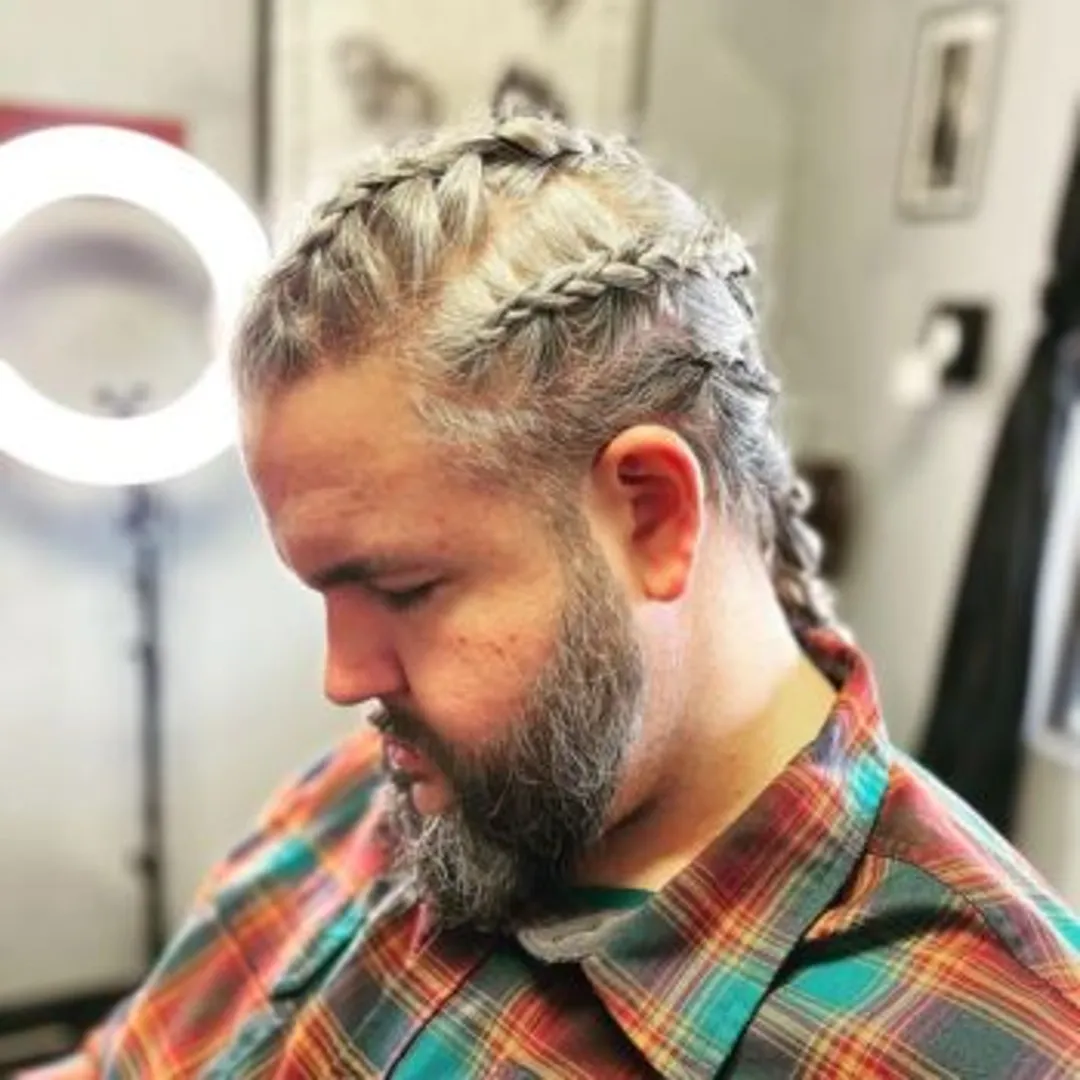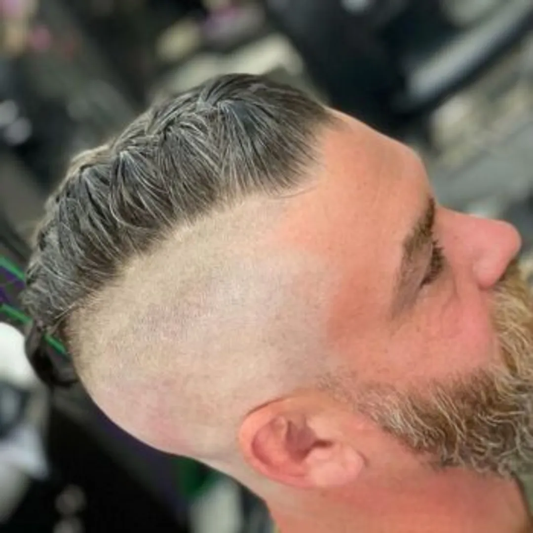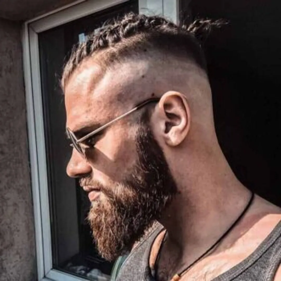 Виски могут быть выстрижены или тэйпированы – не имеет значения, если это сделано с плавными переходами. Это стиль, в котором упор делается на заплетенную бороду, поэтому убедитесь, что волосы уложены должным образом!