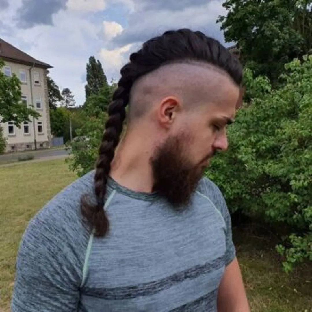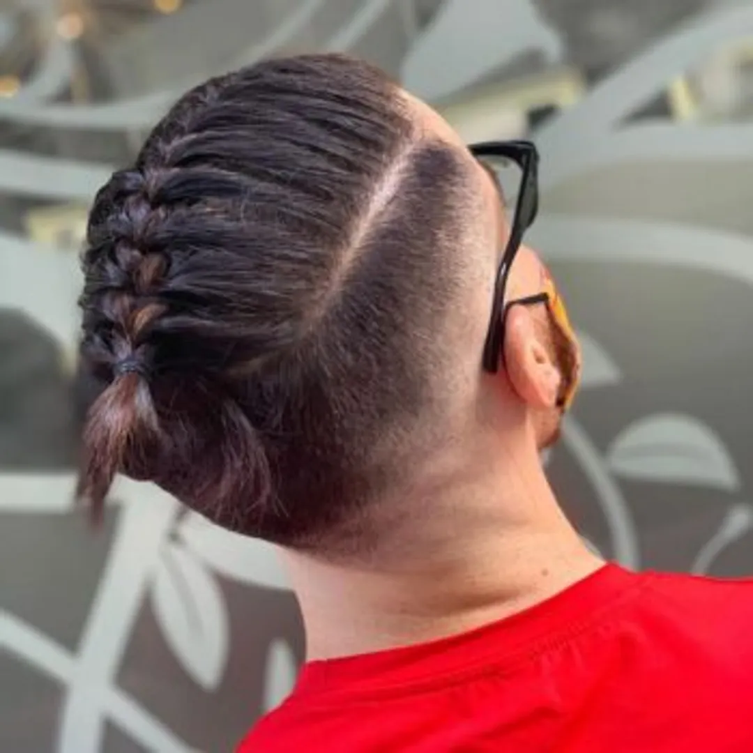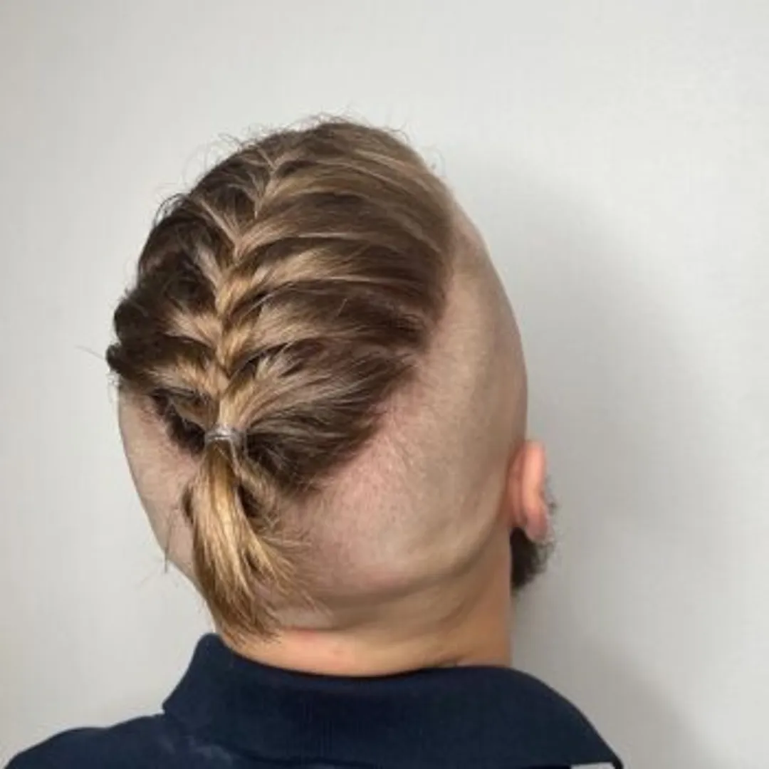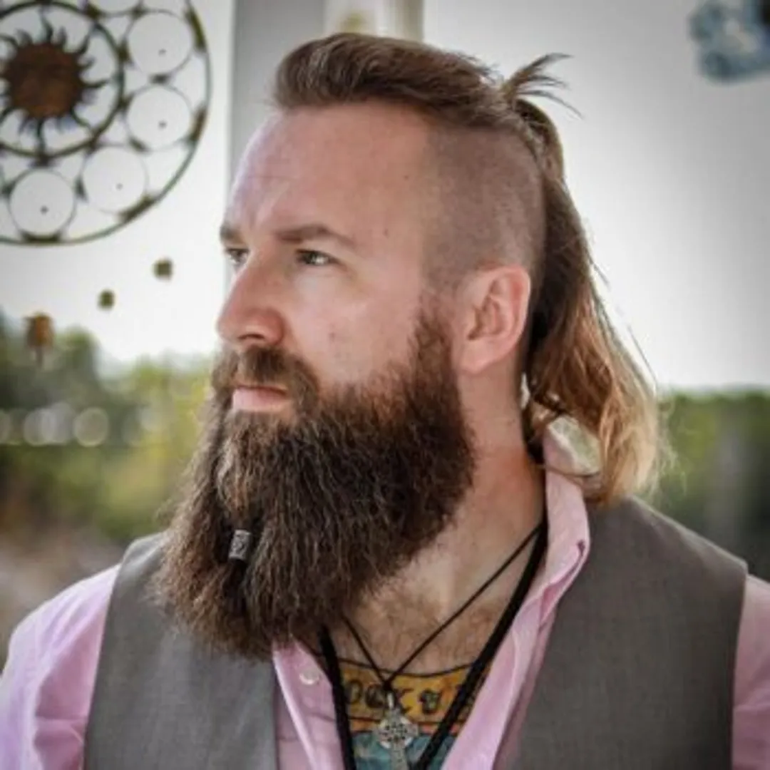 Виски могут быть выстрижены или тэйпированы – не имеет значения, если это сделано с плавными переходами. Это стиль, в котором упор делается на заплетенную бороду, поэтому убедитесь, что волосы уложены должным образом!