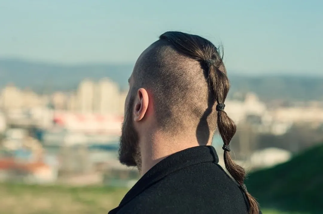 Бритые виски в сочетании с длинным конским хвостом представляют внушительный стиль. Самый лучший способ сделать эту стрижку викинга – сначала отрастить волосы по всей длине, а затем поработать над сбриванием висков.