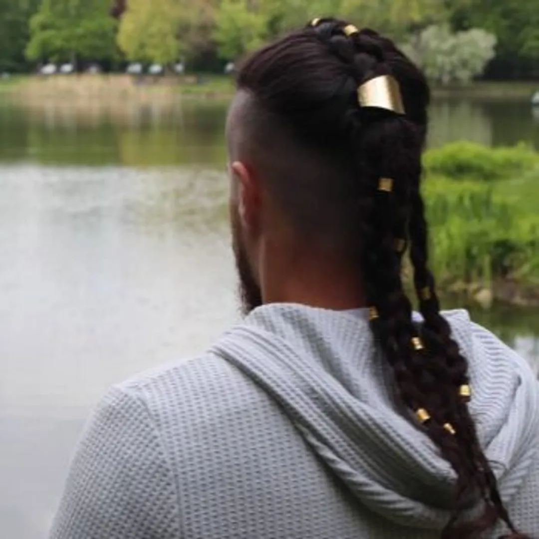 Это настоящий образ воина. Короткостриженые виски делают эту прическу викинга аккуратной, что подчеркивает вашу мужественность. Косы величественно смотрятся на заплетенной длинной бороде, говорят о храбрости владельца и производят впечатление на всякого, кто взглянет на вас.