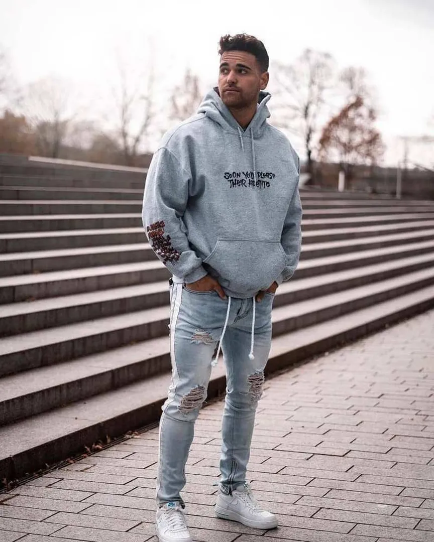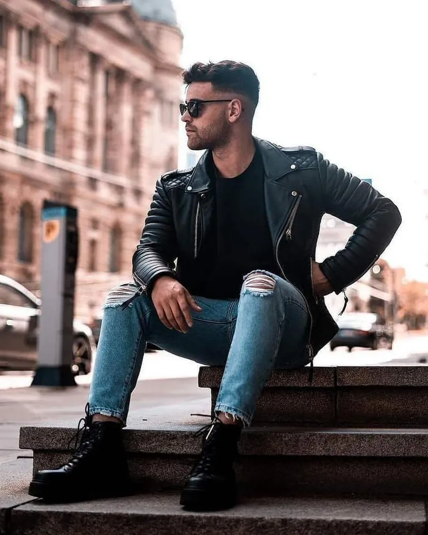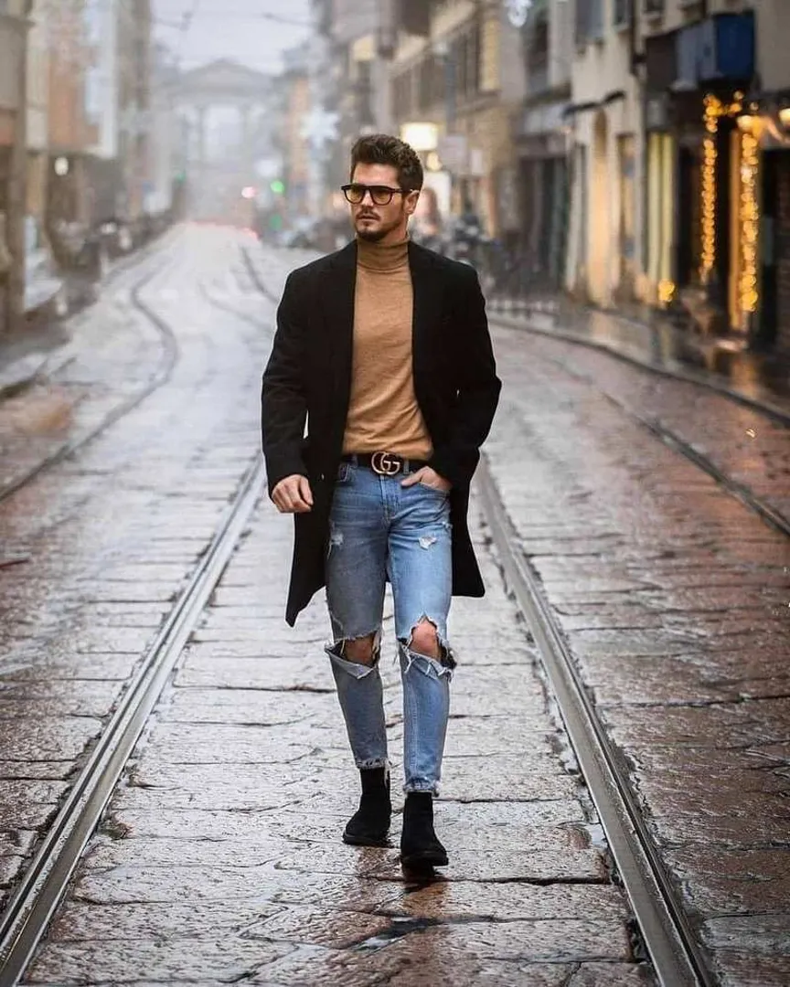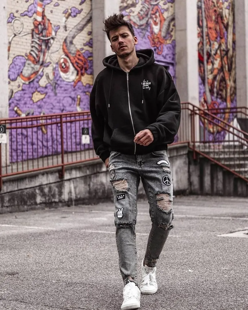 Рваные джинсы действительно имеют поношенный вид, но в то же время в мире мужской моды обладают эффектом крутизны. Дерзкий и крутой образ можно легко сформировать с помощью поврежденной джинсовой ткани или джинсов, имеющих потертости, декоративные заплатки, небрежный ремонт.